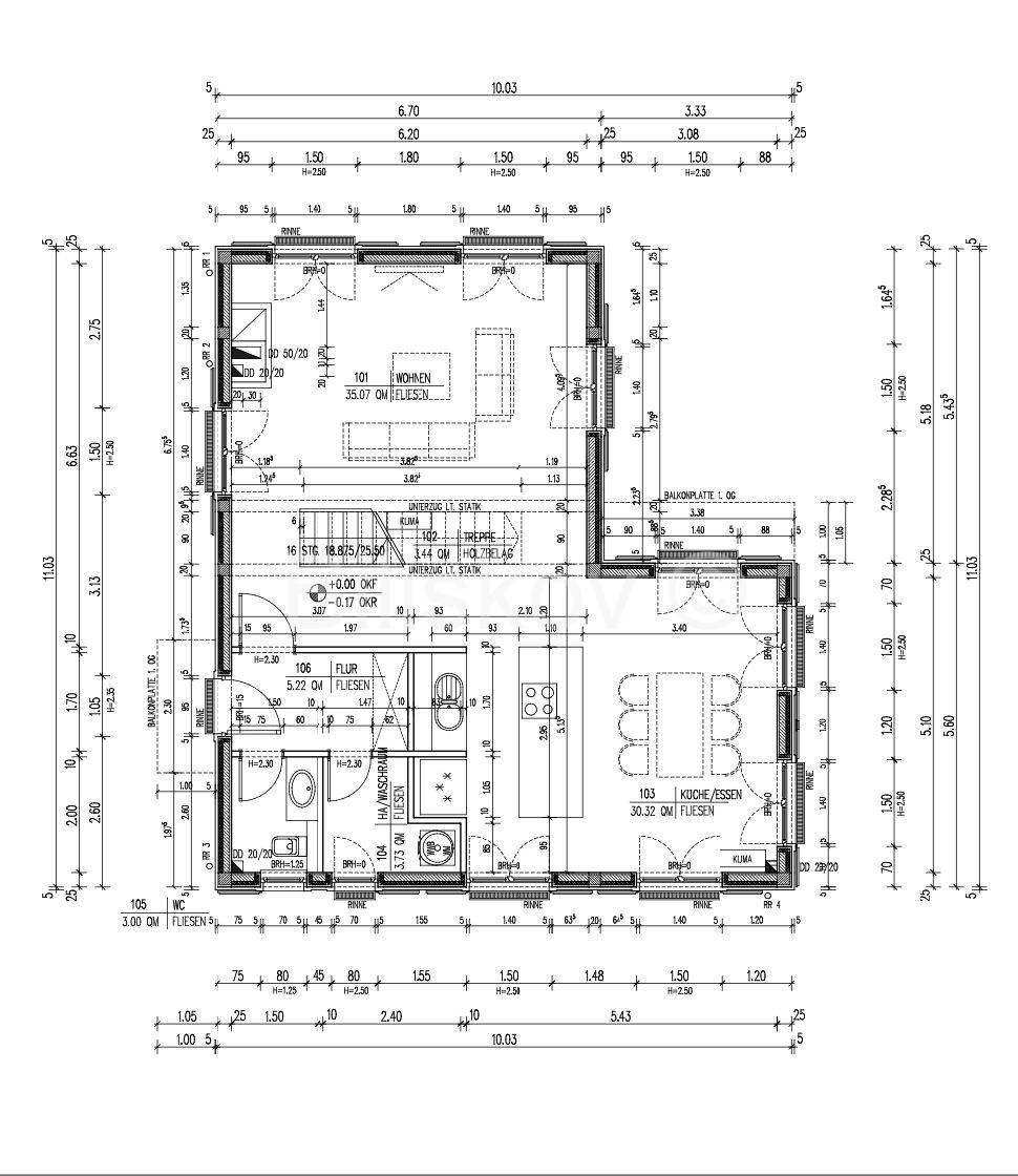U prizemlju se nalazi veliki dnevni boravak u sklopu blagovaone i kuhinje, sprema i kupaona.