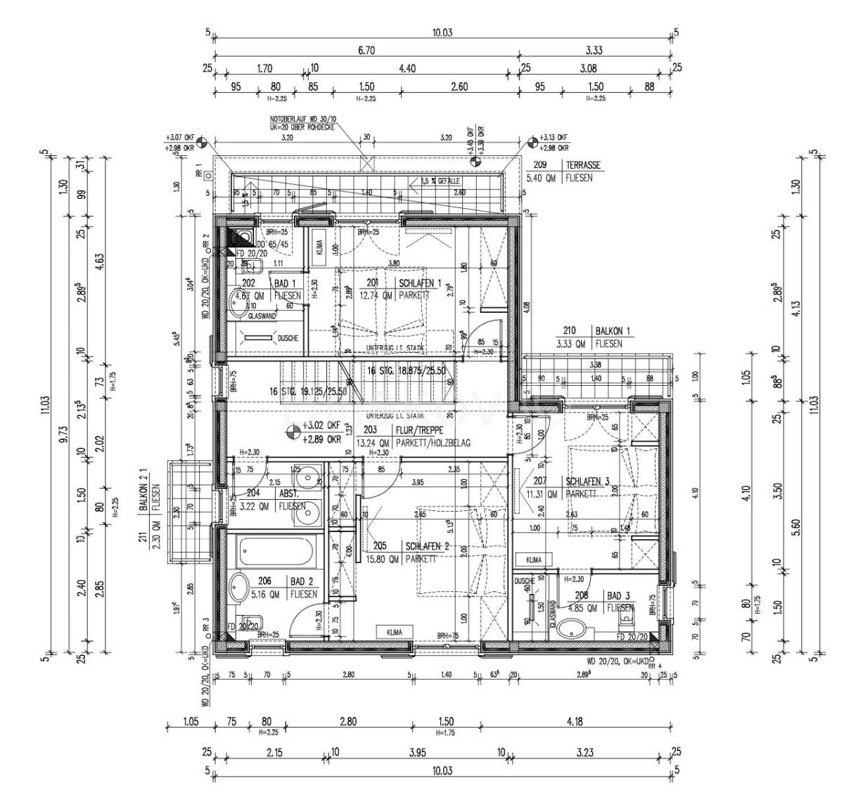 Na prvom katu se nalaze tri velike spavaće sobe s kupaonicama i mala ostava.