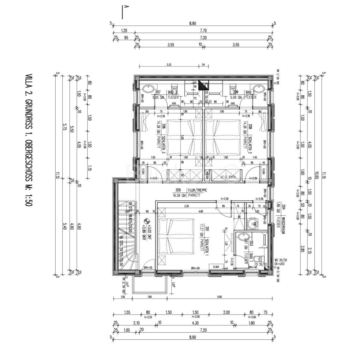 Na prvom katu se nalaze tri velike spavaće sobe s kupaonicama i mala ostava.