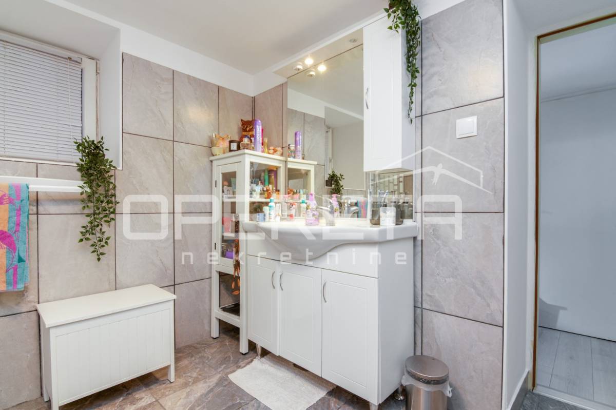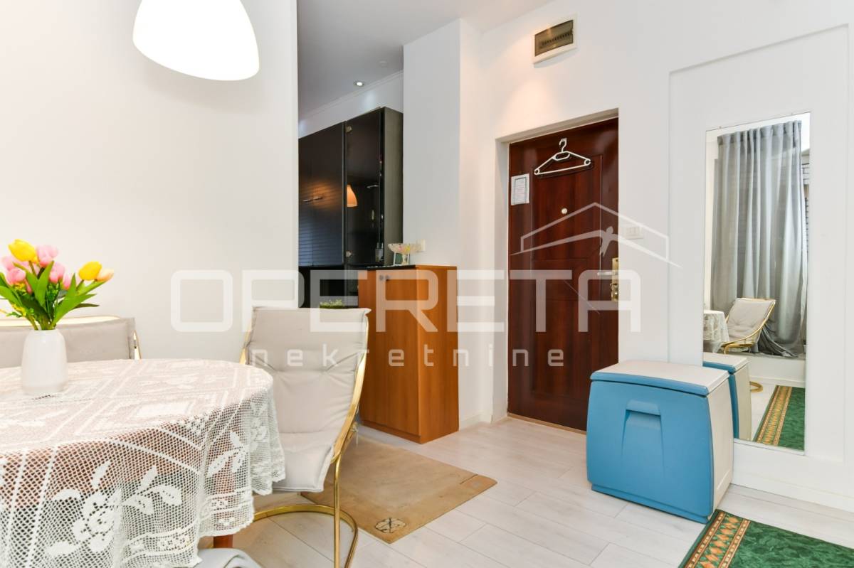 STAN PRODAJA, PANTOVČAK, ulica Pantovčak kod Britanca, 22,47 m2 upisano u ZK, u stvarnosti 40 m2 (suterenski dio nije u papirima i nije legaliziran). Šarmantan dvoetažni stan nadomak Britanca, odmah useljiv. U stan se ulazi iz prizemlja i na prizemnoj etaži se nalazi kuhinja sa blagovaonicom koja ima izlaz na mali balkončić, dnevna sobe s pogledom na ulicu Pantovčak iz koje se stepenicama spušta u suterenski dio (visina dolje je 2 metra) gdje se nalazi spavaća soba, degažman i kupaonica sa wc-om (i soba i kupaonica imaju prozor!). Parking je ispred zgrade 1. zona. Grijanje je električno. Stolarija dvoslojni PVC, na podu laminat, klima u stanu. Preporuka!