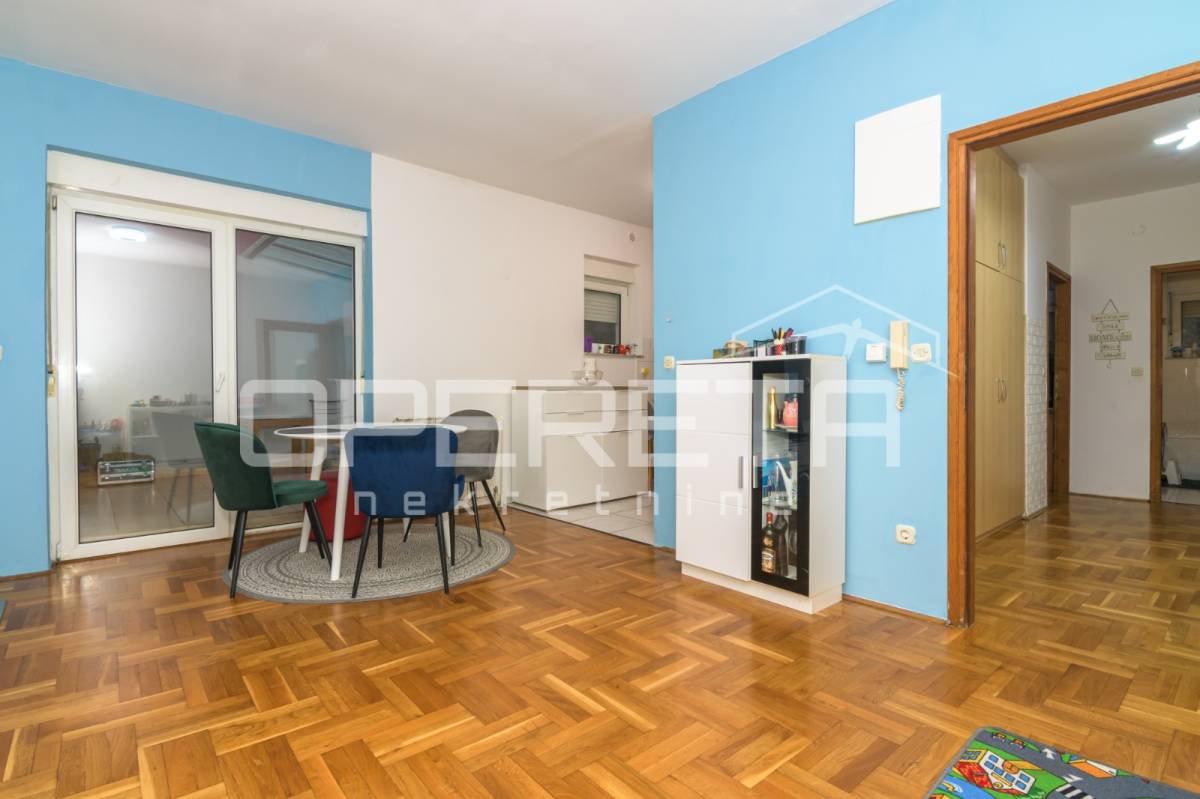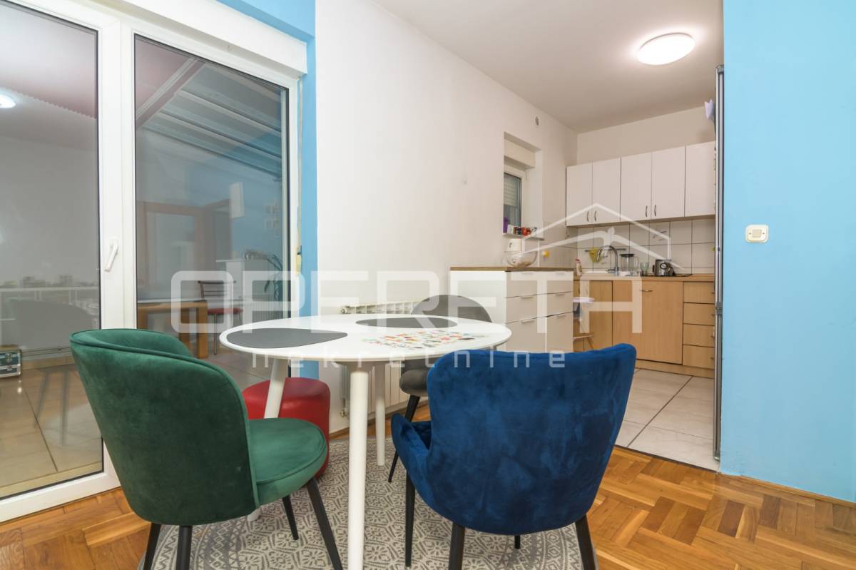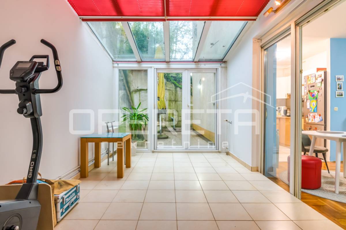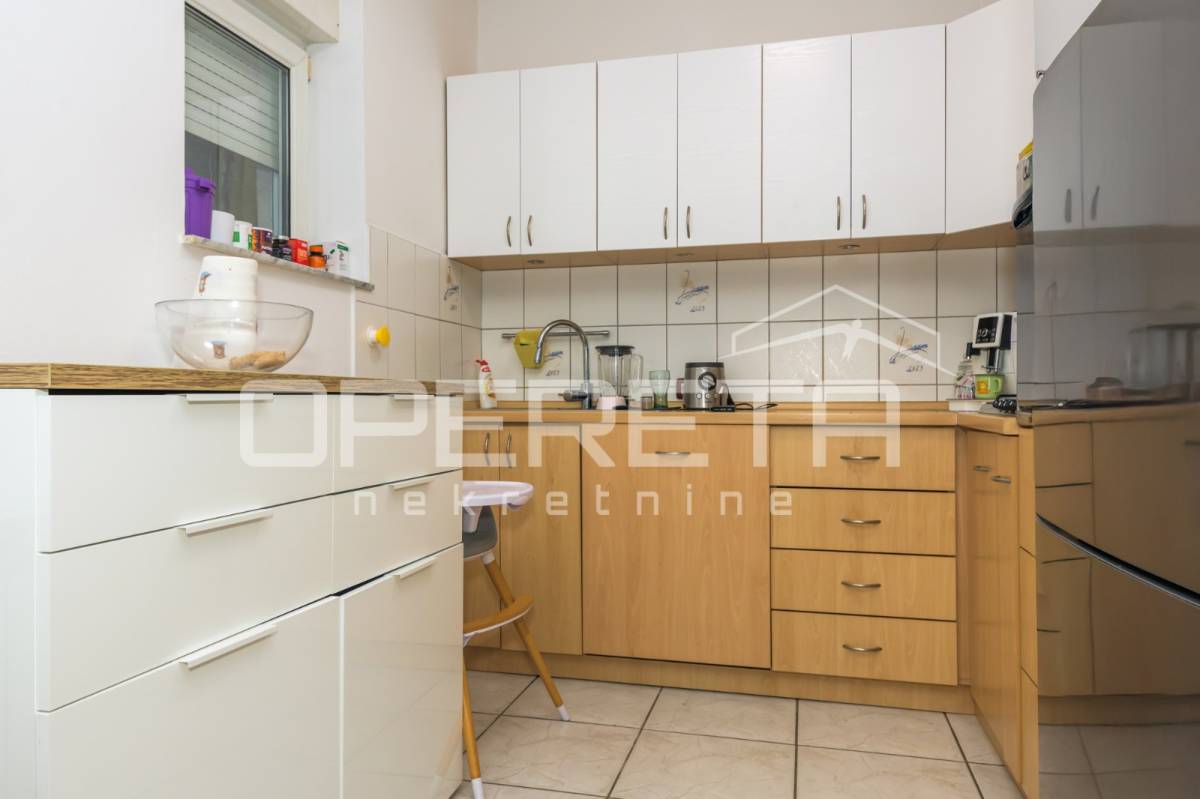 Prodaje se izvrstan, prostran i prozračan 2,5soban stan s terasom, na prvom katu (od ukupno 3) uredno održavane zgrade, na izrazito atraktivnoj lokaciji koja graniči s prirodom/šumom, a gotovo u centru grada. Orijentacije SZ-JI, sastoji se od "open space" dnevnog boravka s blagovaonicom i kuhinjom te izlazom na terasu, spavaće sobe, kupaonice s wc-om, izbe i ulaznog hodnika. Dio terase je zatvoren u uređenu prostoriju sa staklenim krovom i podnim grijanjem. Pravo korištenja s terasom povezanog i ograđenog vrta od cca 8 m2, u potpunoj privatnosti. U cijenu uključena garaža od 9,18 m2. Mirna mikro lokacija okružena zelenilom ( terasa ima izlaz u prirodu/šumu), u neposrednoj blizini centra grada i svih sadržaja potrebnih za kvalitetan život (do Ilice 3 min vožnje). Moguća kupnja kreditom! Preporuka!