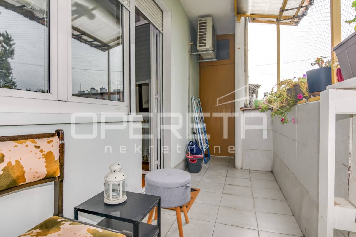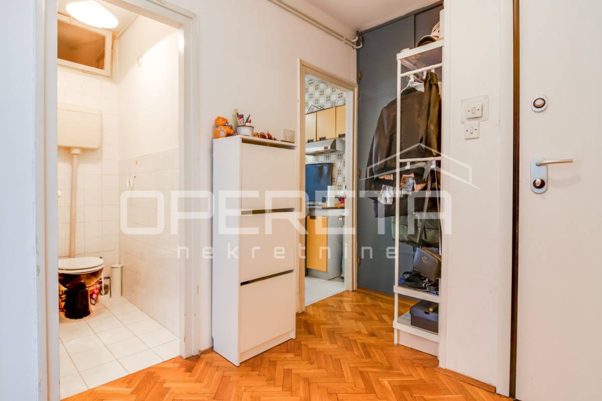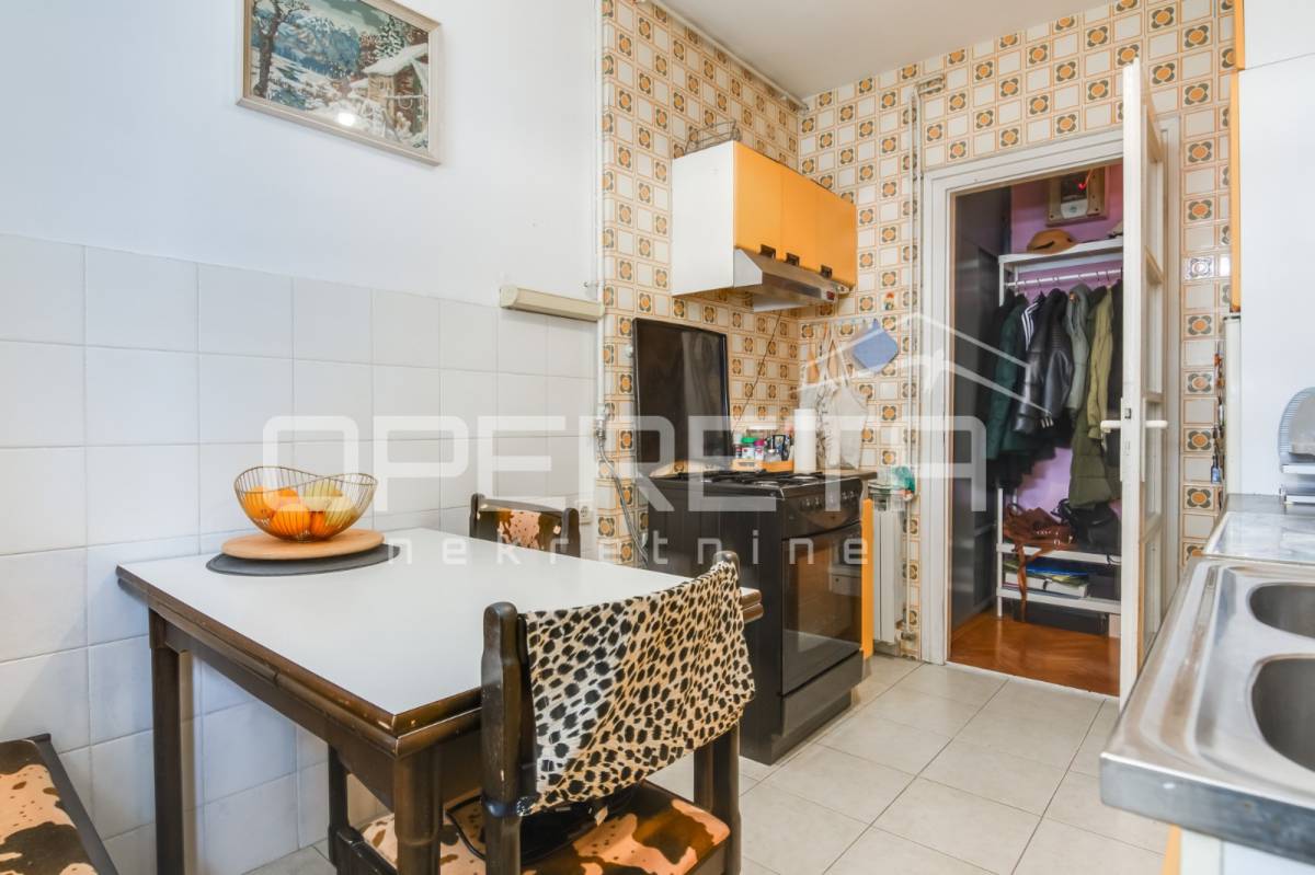 Prodaje se 2S stan na traženoj i rijetko dostupnoj lokaciji na 4. katu od 5. katova zgrade bez lifta, stambene površine 63m2. Ukupna kvadratura sa spremištem i natkrivenim parkingom pod rampom ( vanknjižno vlasništvo ), obračunato sa koeficijentom iznosi 71m2. Prilikom renovacije stana moguće je dobiti dodatnu spavaću sobu. Na zgradu će do kraja godine biti postavljena nova PVC stolarija, a za fasadu i lift se skupljaju potpisi. Dokumentacija uredna!