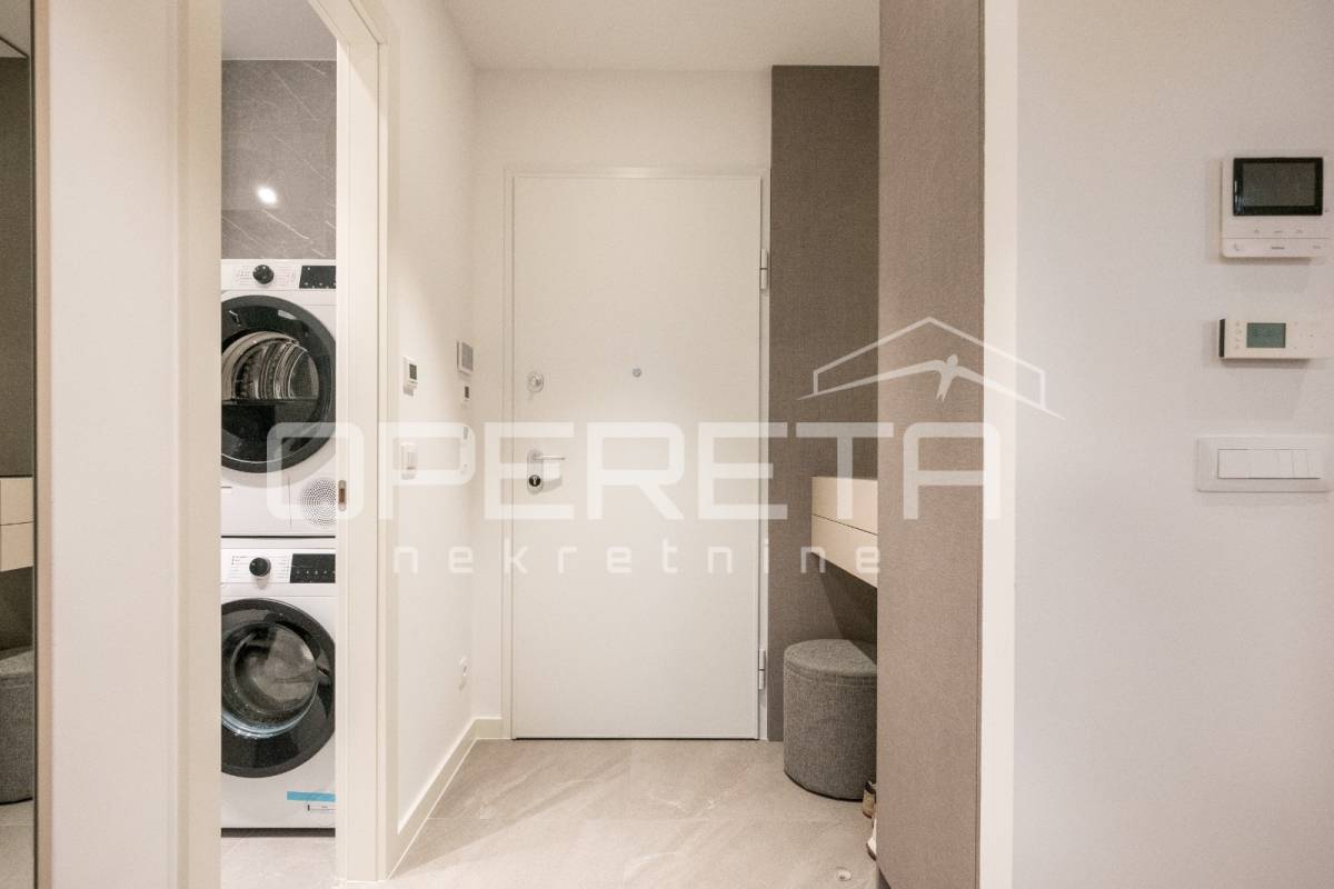 Stan je veličine 45,49m2 s loggiom 7,12m2 te pripadajućim parkirnim mjestom veličine 13,42m2. Što sve zajedno, obračunato po koeficijentima čini 57,54 m2 ove iznimno atraktivne nekretnine.