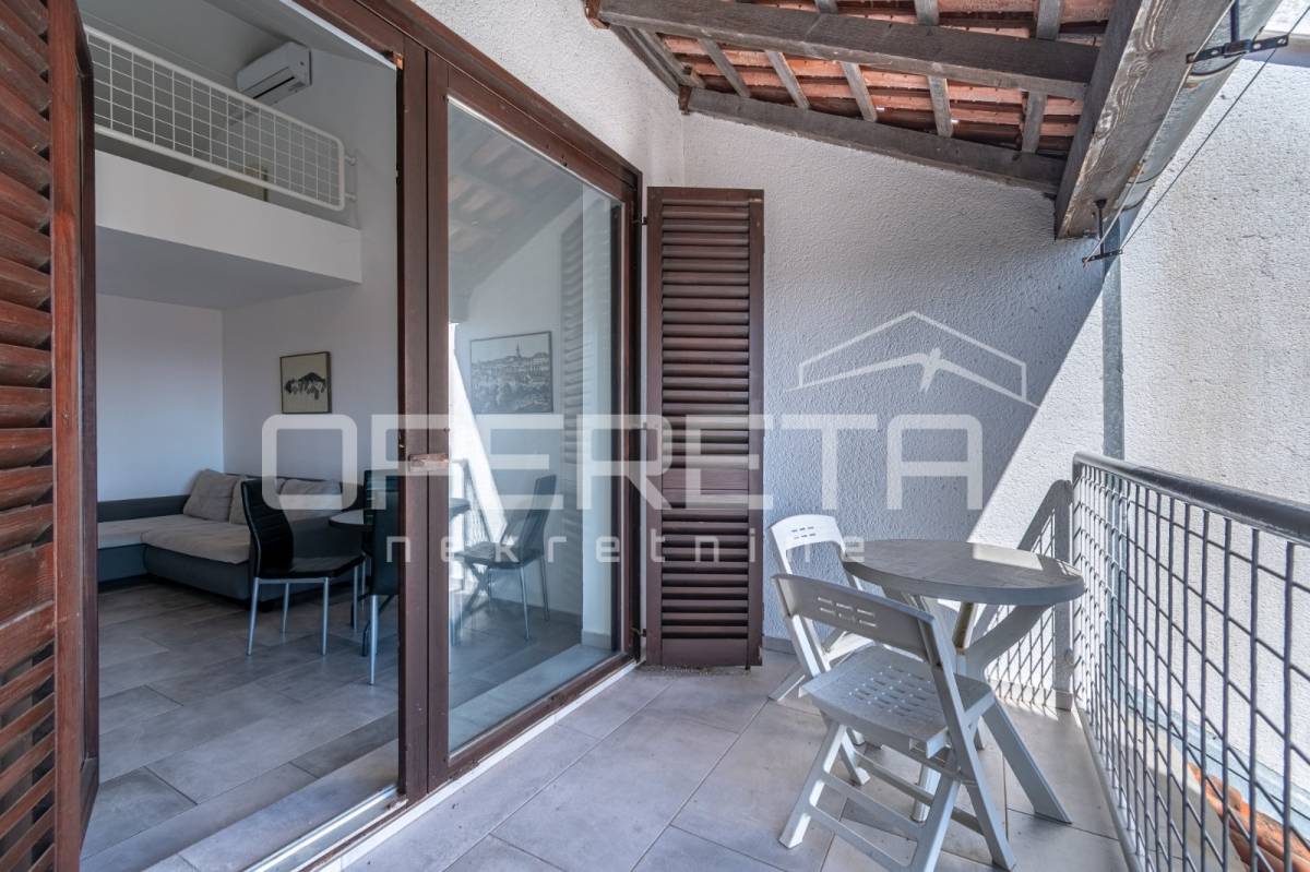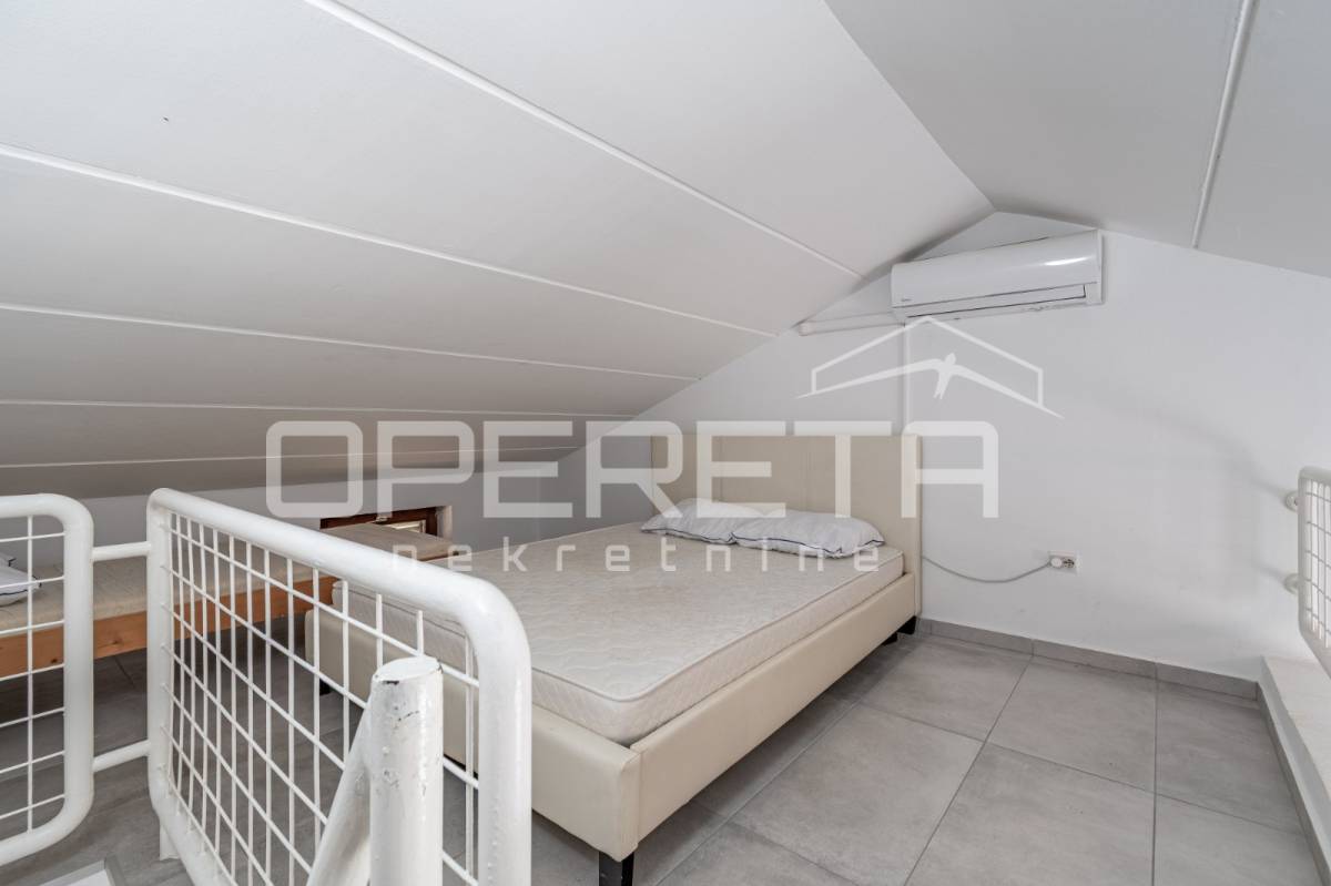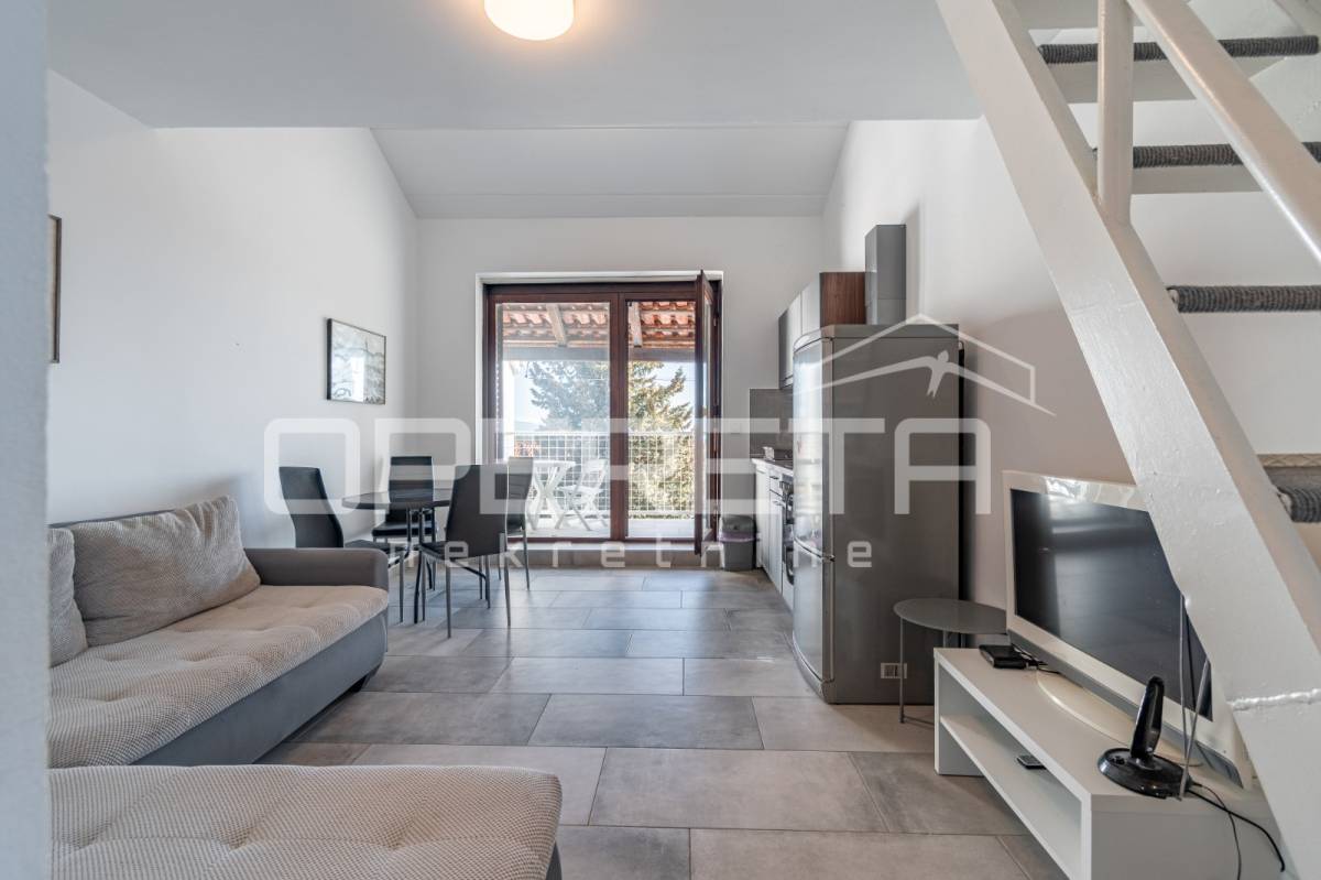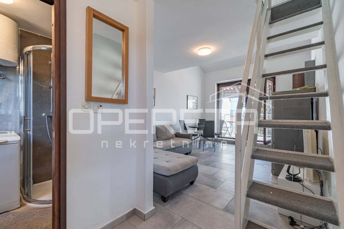 APARTMAN, PRODAJA, ŠEGOTIĆI, DUGA UVALA, 35m2, 1-soban apartman u blizini plaže (350m). Apartman je smješten na 2. katu ujedno i zadnjem, a sastoji se od ulaznog hodnika, kupaonice s WC-om, dnevnog boravka s kuhinjom i blagovaonicom te izlazom na balkon i galerijom gdje je smještana spavaća soba.