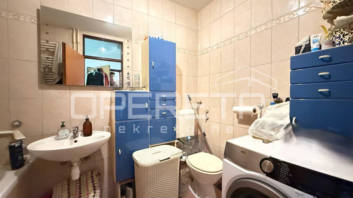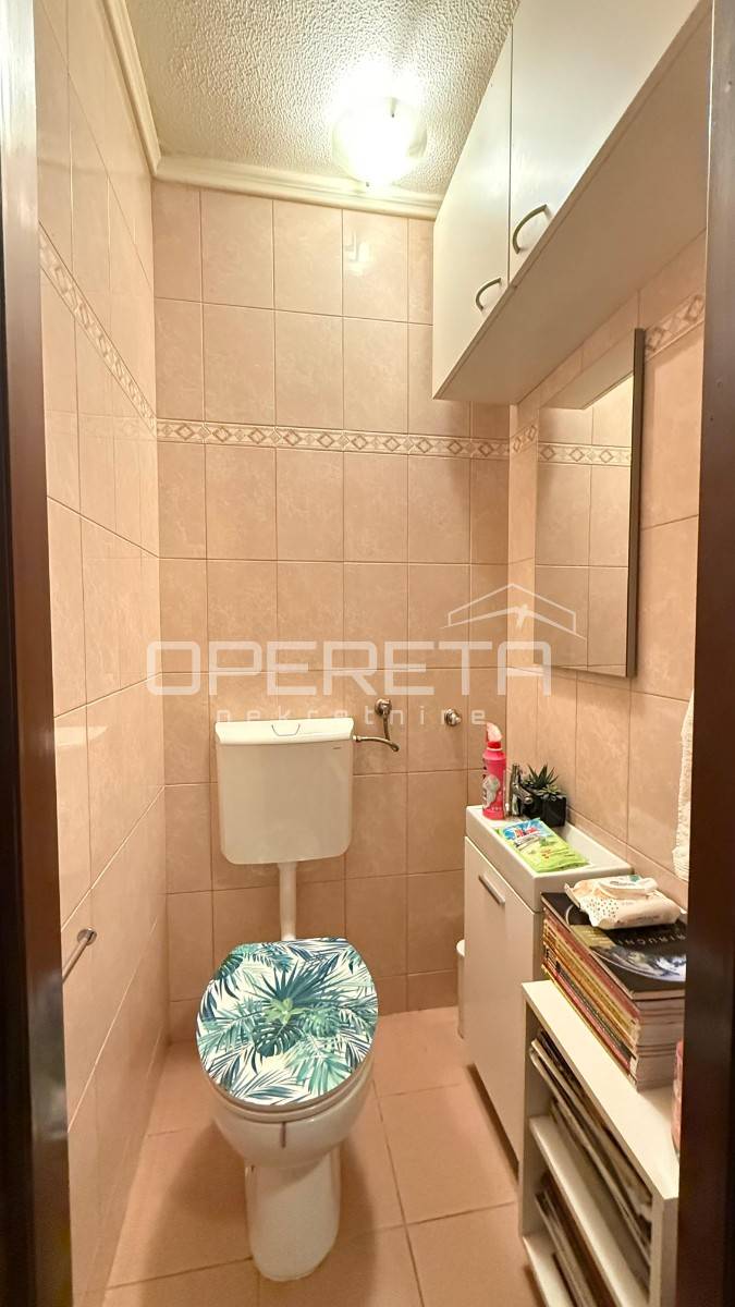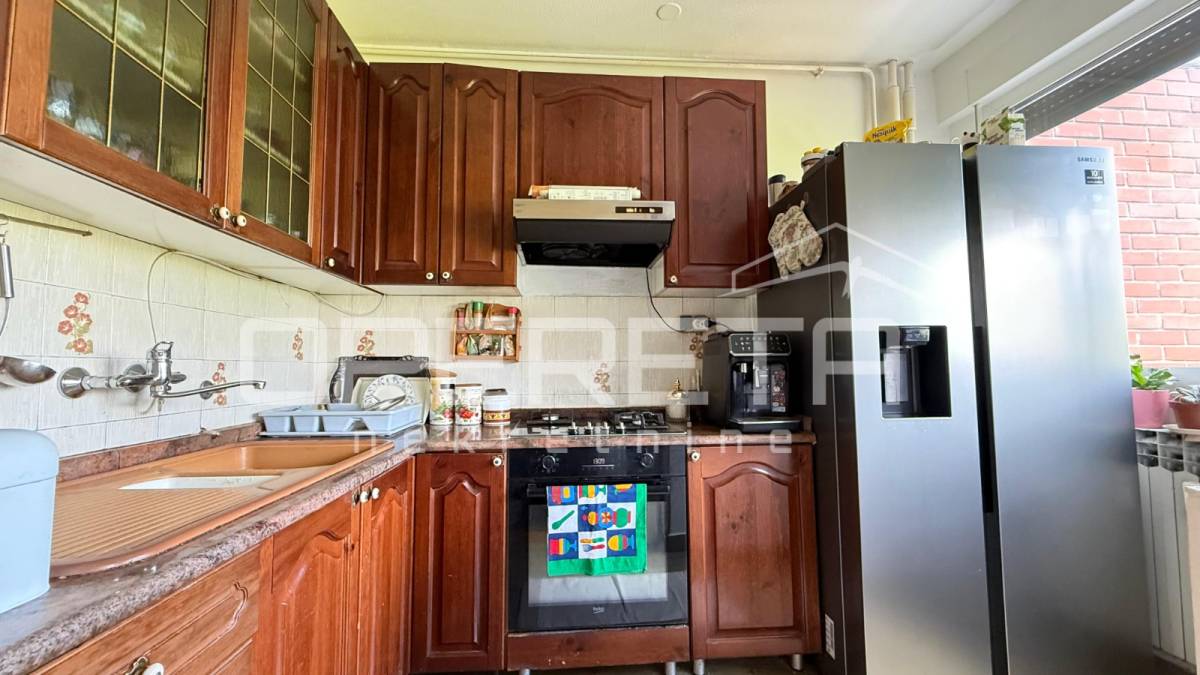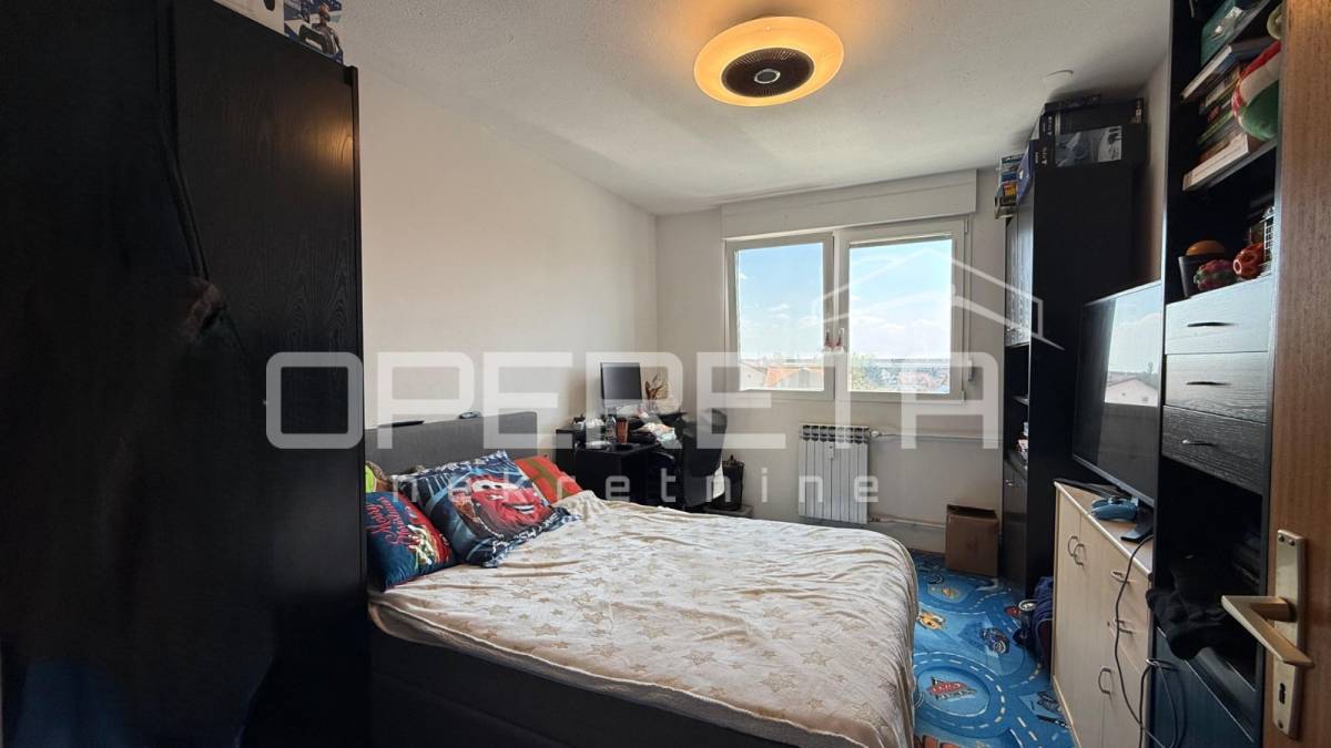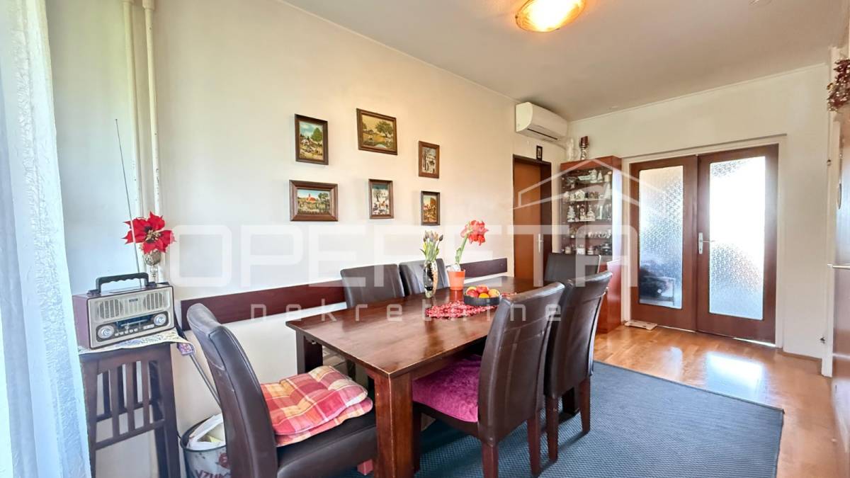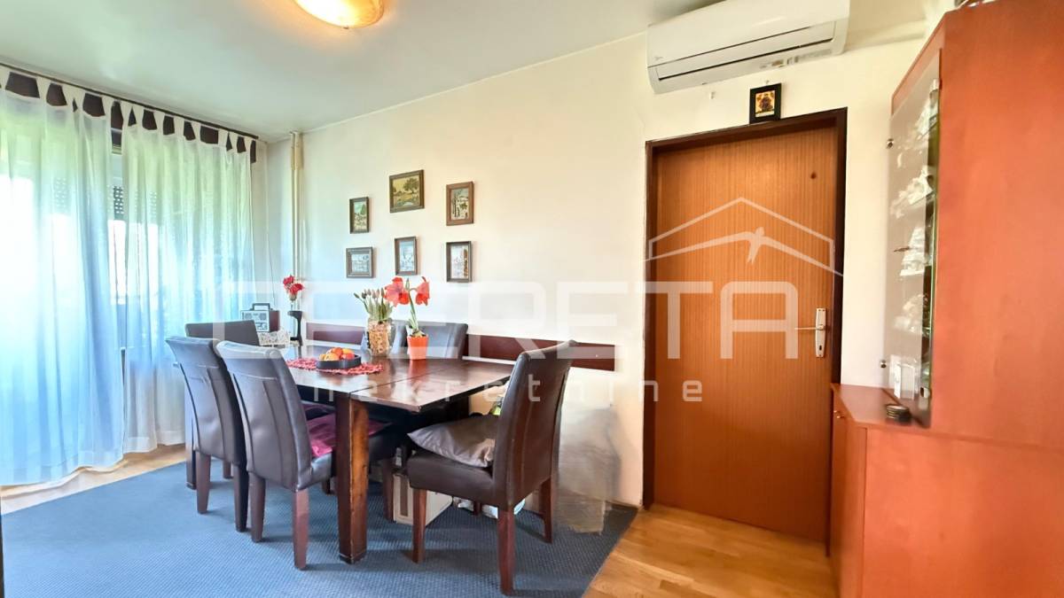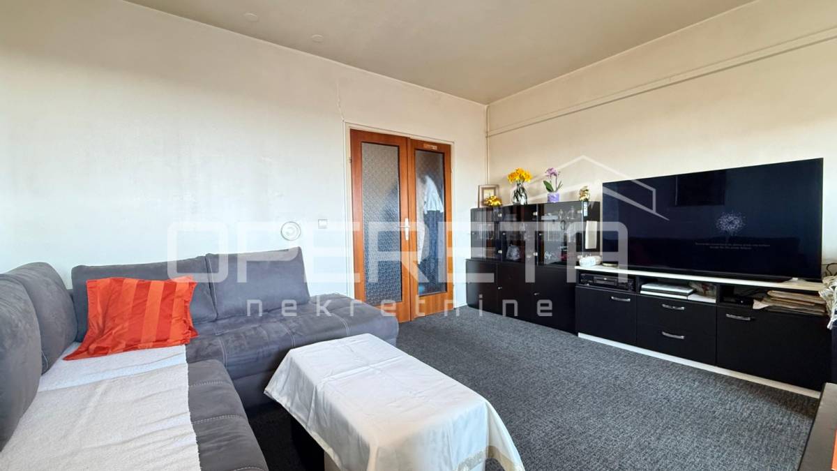 U kvalitetno izgrađenoj zgradi iz 1984. godine na 4. katu se prodaje stan površine 82,67m2. Sastoji se od ulaznog hodnika, dnevnog boravka s izlazom na balkon, kuhinje s blagovaonicom i izlazom na lođu, 2 spavaće sobe, ostave i garderobe. Stanu još pripadaju vanknjižno 2 spremišta (jedno na katu gdje je smješten stan i jedno u podrumu zgrade). S obzirom na orijentaciju (sjever-jug), stan je prozračan te je prirodno osvjetljen. U dobro je stanju te ne zahtijeva veća ulaganja. Odlična prilika za obitelj s obzirom na blizinu škole, vrtića i javnog prijevoza kao i ostalih bitnijih sadržaja za život! Vlasništvo i dokumentacija uredni!