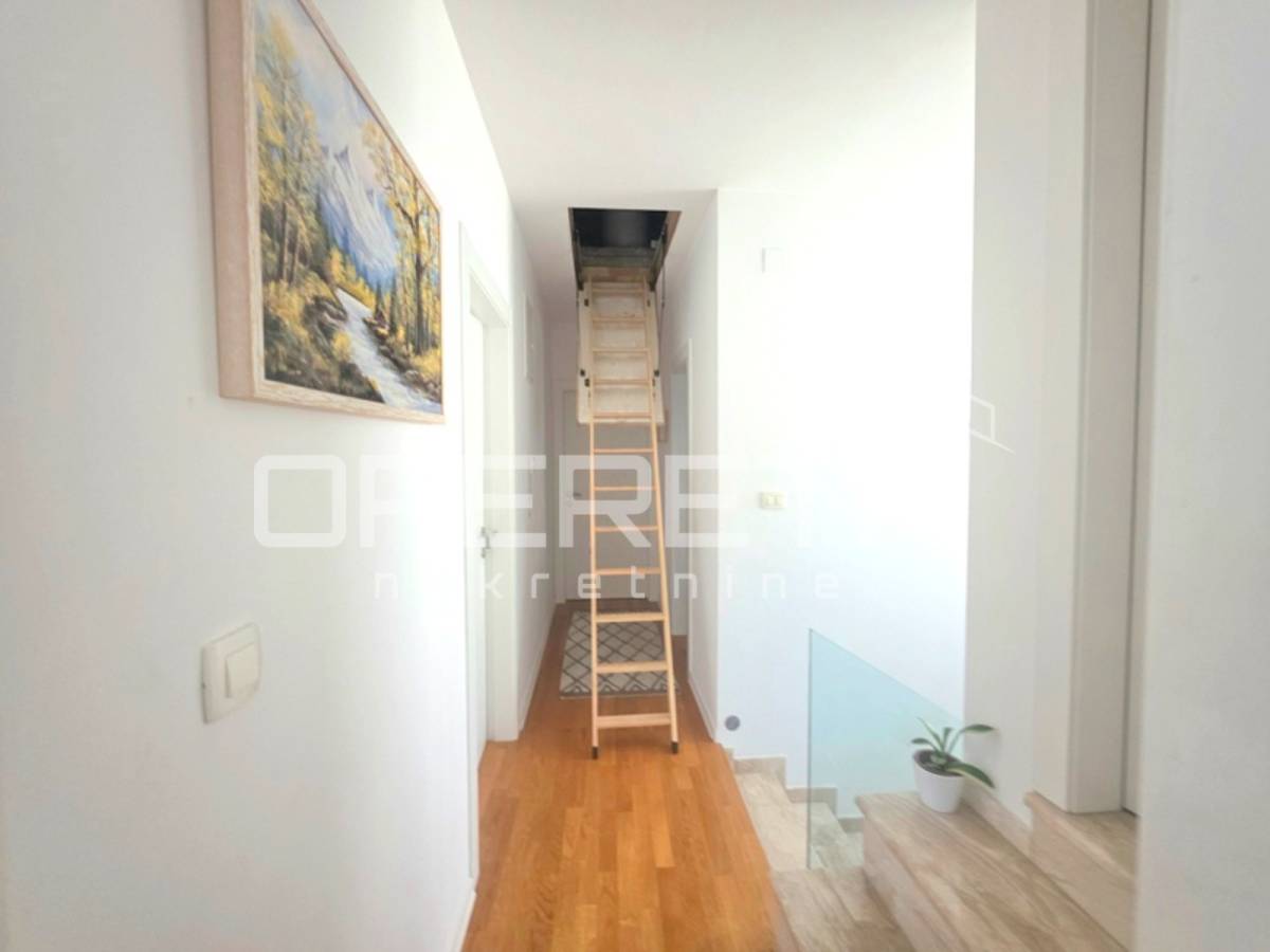 PRODAJA, STAN, ZAGREB, GAJNICE, 140m2, vrt, 4.5-sobni, kao nov, stan ima 108m2 zatvorenog prostora. Na donjoj etaži: hodnik, dnevni boravak s kuhinjom i blagovaonicom, wc (ima prozor), ostava ispod stepenica, stubište; Na gornjoj etaži: hodnik, 3 sobe, vešeraj (ima prozor), kupaonica s wc-om (ima prozor). U ukupnu navedenu kvadraturu stana su po koefic. obračunati terasa i vrt na koje se ide iz dnevnog boravka, tavan od 37m2 te balkon i vanjsko parkirno mjesto. Stan ne zahtjeva nikakva ulaganja, u zasebnoj je stambenoj jedinici (kuća u nizu), armirano-betonska sa termo fasadom, pruža dojam života u kući. Idealna prilika za Kupca koji želi udobnost toplog doma, puno dodatnog prostora, privatni ograđeni vrt za roštilj, igru i druženja u mirnom uređenom susjedstvu na 5 min. pješice od dućana, škole, vrtića, placa i ostalih potrebnih sadržaja. PREPORUČUJEMO!