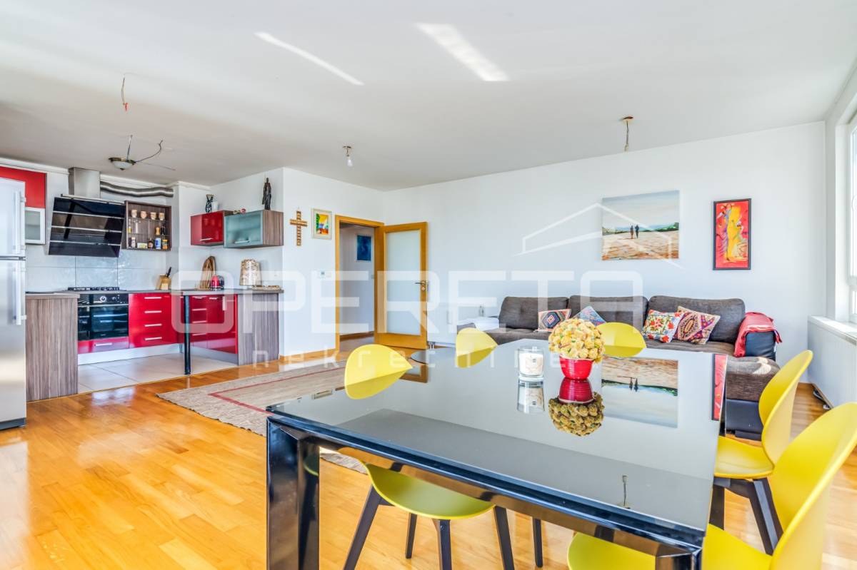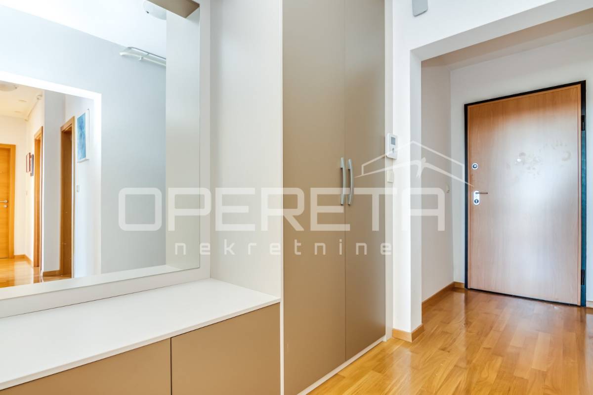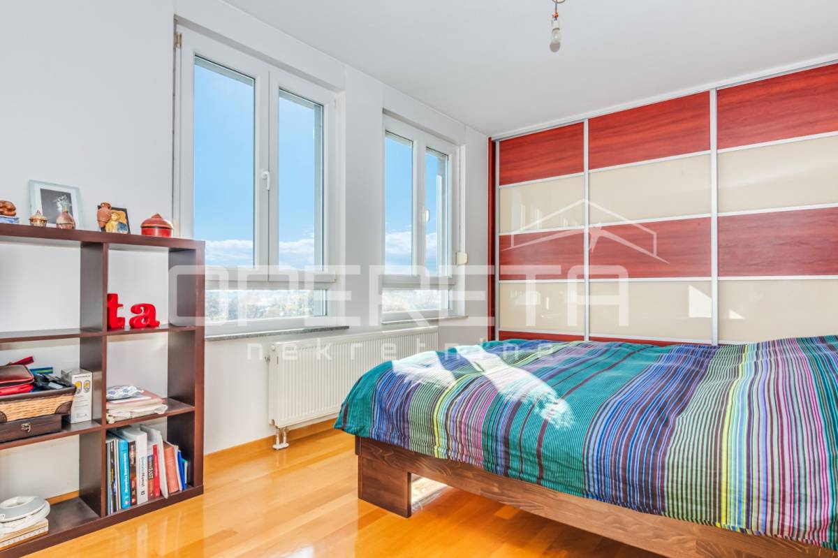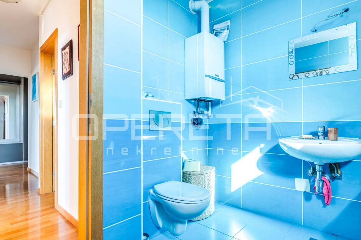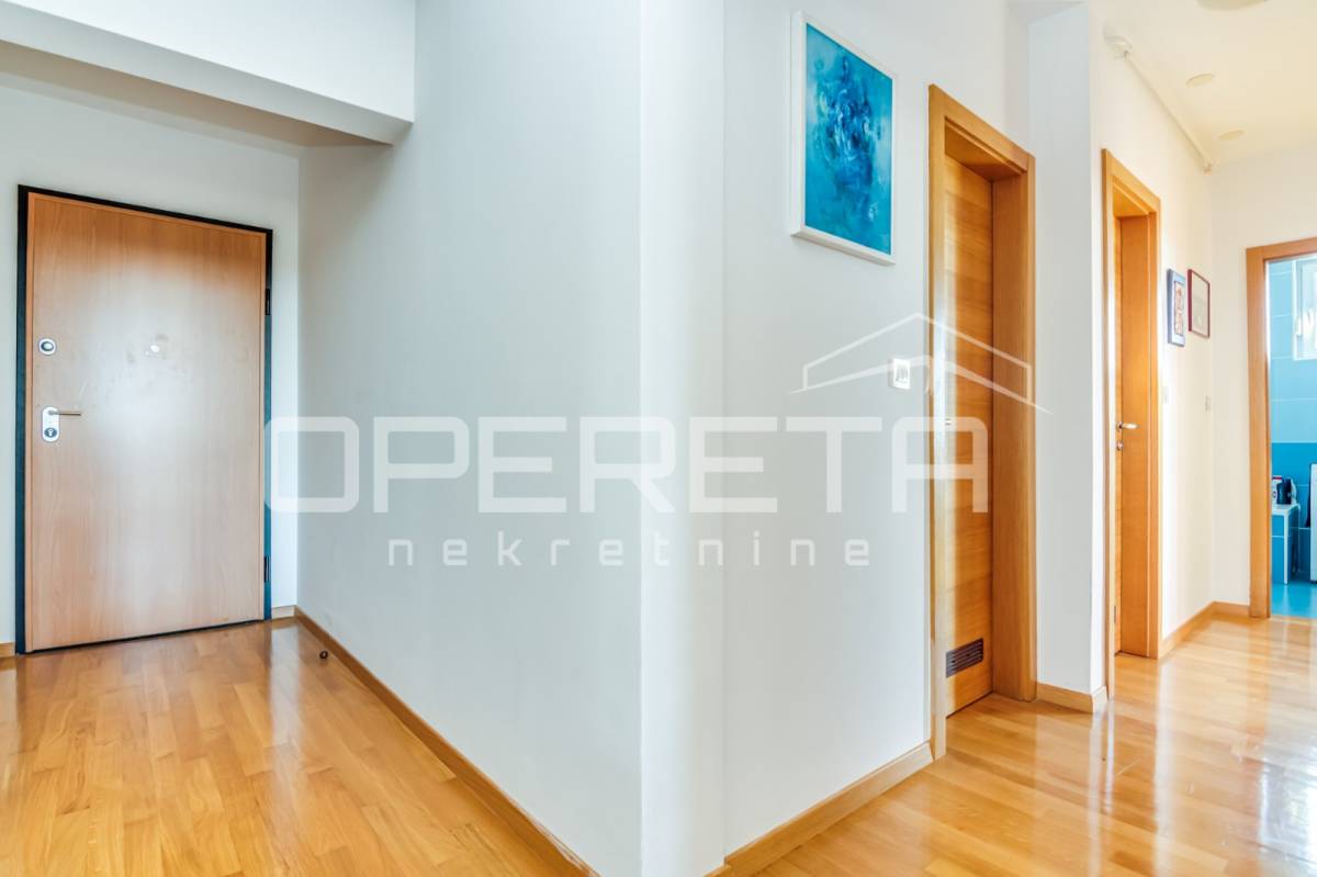 PRODAJA STANA, KNEŽIJA, Horvaćanska, 92,06 m2, prostran i svijetao trosoban stan smješten na sedmom, ujedno i zadnjem katu zgrade iz 2007. godine. Nalazi se na odličnoj poziciji u zgradi te ima prekrasan, otvoren pogled i tijekom cijeloga je dana ispunjen prirodnim svjetlom. Sastoji od prostranog ulaznog hodnika s ugradbenim ormarom, ostave, kupaonice s WC-om koja ima vlastiti prozor, dodatno zasebnog WC-a, dvije komforne spavaće sobe te velikog open space dnevnog boravka s blagovaonicom i kuhinjom te izlazom na loggiu. Trenutno stan funkcionira kao trosoban, no u originalnom projektu bio je zamišljen kao četverosoban, pa se vrlo jednostavnom intervencijom može vratiti u prvobitnu varijantu prema potrebama budućeg vlasnika. Zgrada je uredna, mirna, posložena i dobro održavana, a stan je odmah useljiv. Zbog svoje kvadrature, rasporeda, orijentacije i same mikrolokacije - stan je idealan i po mjeri jedne obitelji. Preporuka agencije!