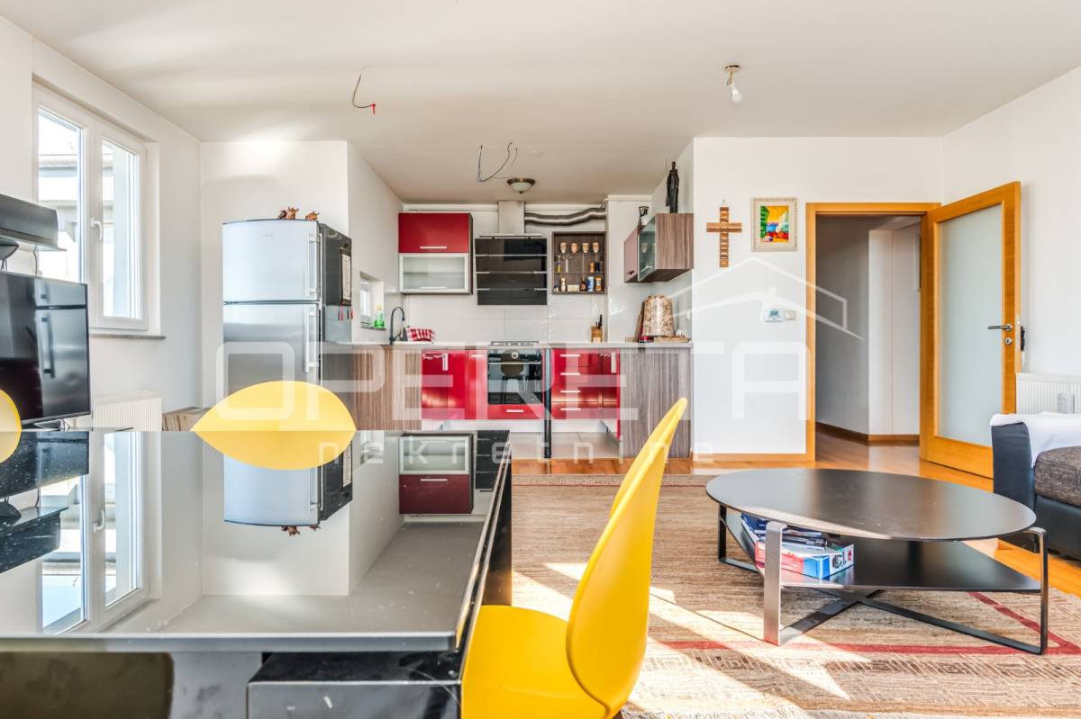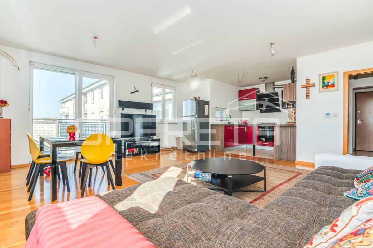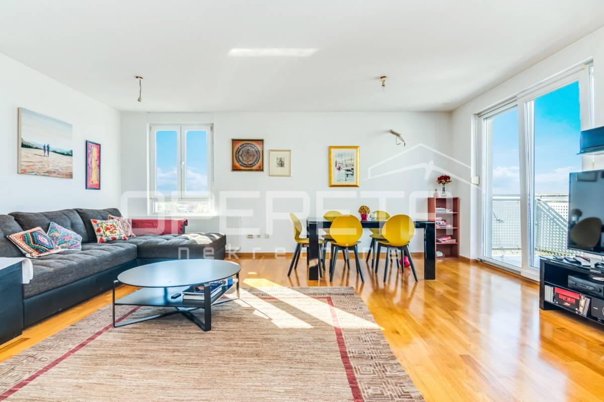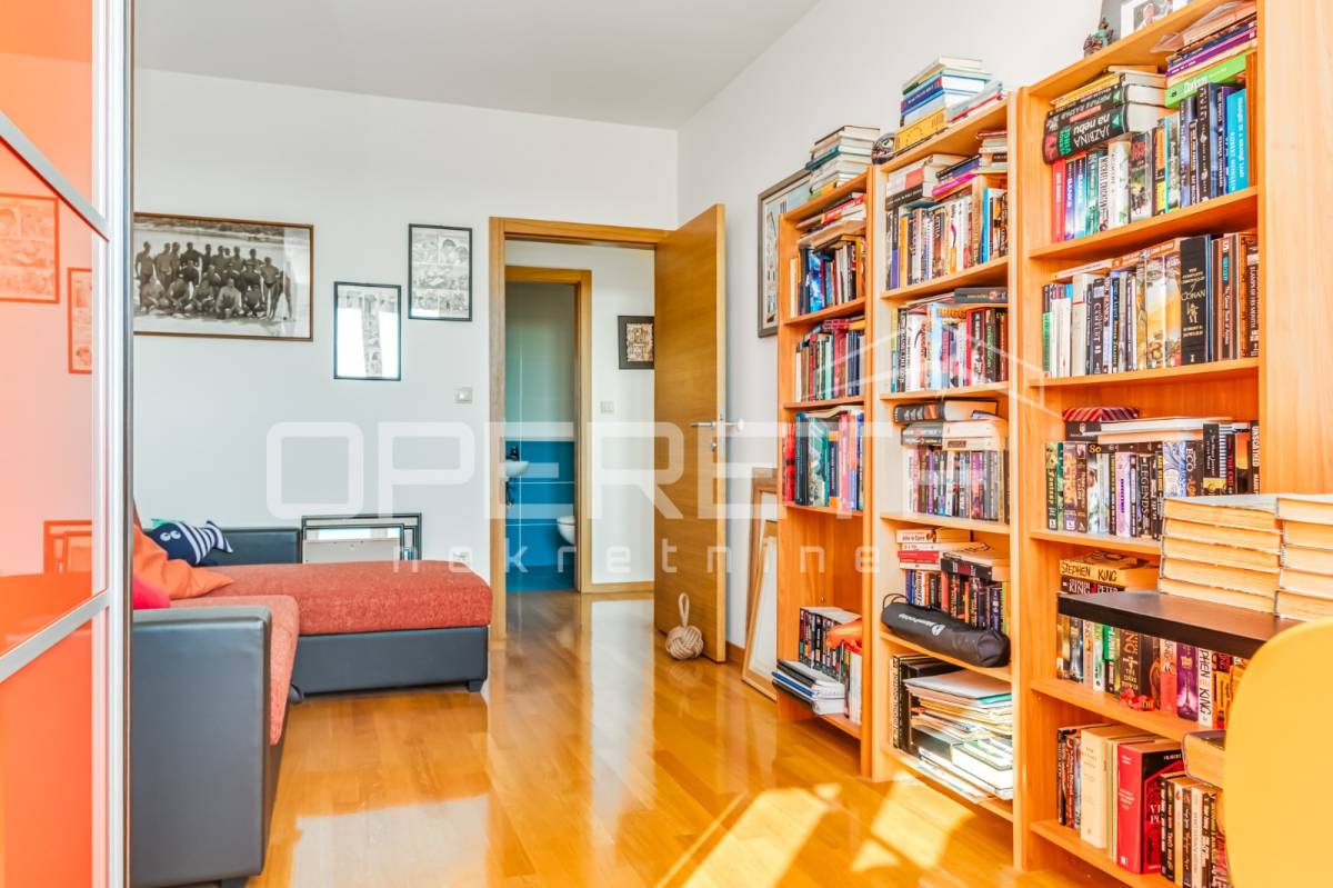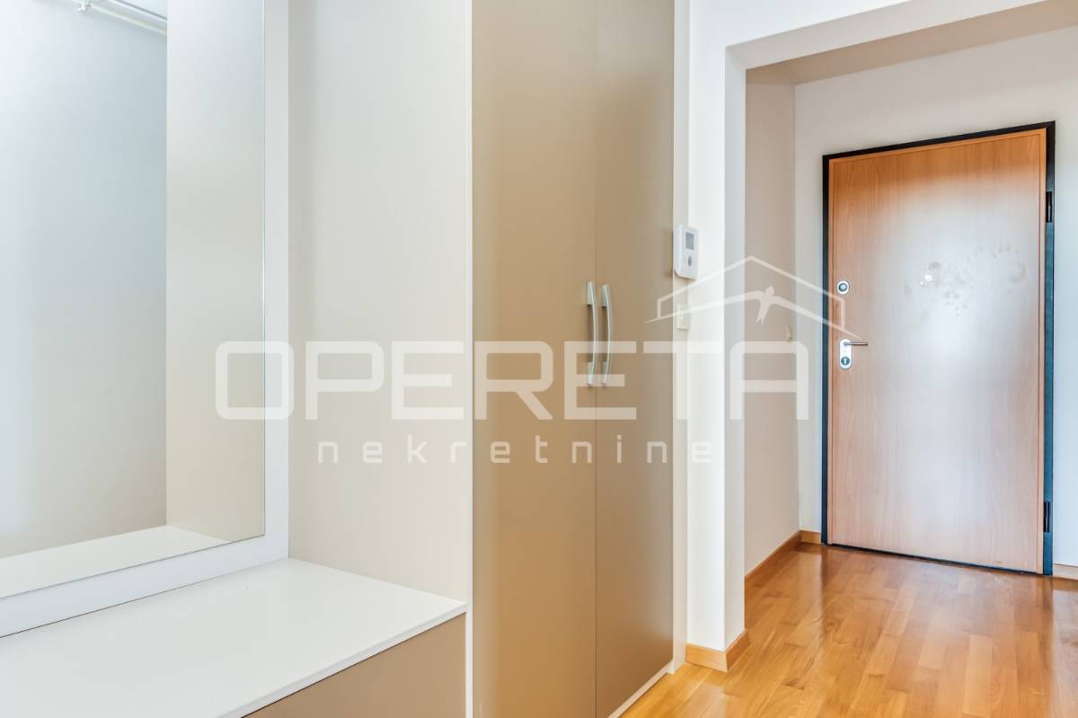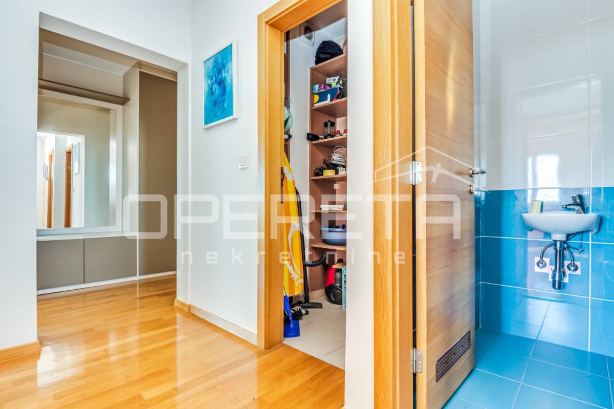 PRODAJA STANA, KNEŽIJA, Horvaćanska, 92,06 m2, prostran i svijetao trosoban stan smješten na sedmom, ujedno i zadnjem katu zgrade iz 2007. godine. Nalazi se na odličnoj poziciji u zgradi te ima prekrasan, otvoren pogled i tijekom cijeloga je dana ispunjen prirodnim svjetlom. Sastoji od prostranog ulaznog hodnika s ugradbenim ormarom, ostave, kupaonice s WC-om koja ima vlastiti prozor, dodatno zasebnog WC-a, dvije komforne spavaće sobe te velikog open space dnevnog boravka s blagovaonicom i kuhinjom te izlazom na loggiu. Trenutno stan funkcionira kao trosoban, no u originalnom projektu bio je zamišljen kao četverosoban, pa se vrlo jednostavnom intervencijom može vratiti u prvobitnu varijantu prema potrebama budućeg vlasnika. Zgrada je uredna, mirna, posložena i dobro održavana, a stan je odmah useljiv. Zbog svoje kvadrature, rasporeda, orijentacije i same mikrolokacije - stan je idealan i po mjeri jedne obitelji. Preporuka agencije!