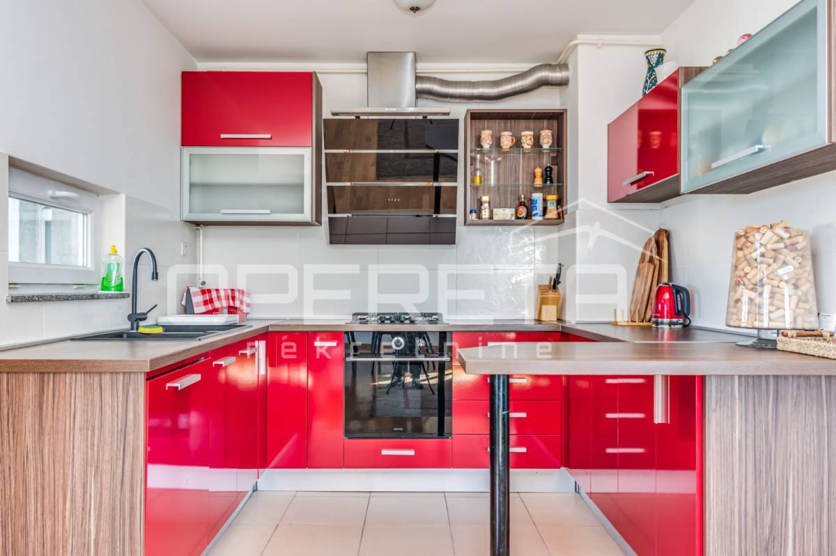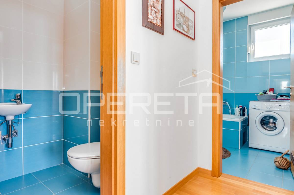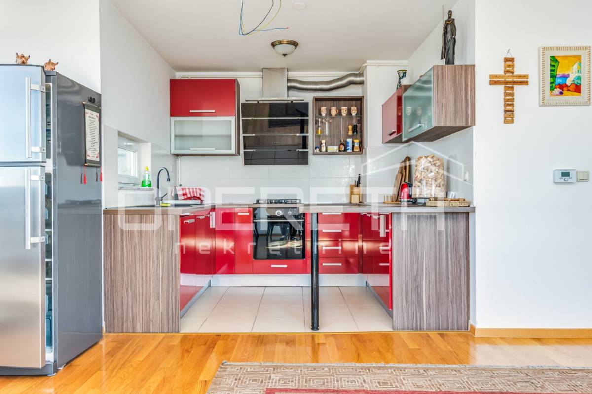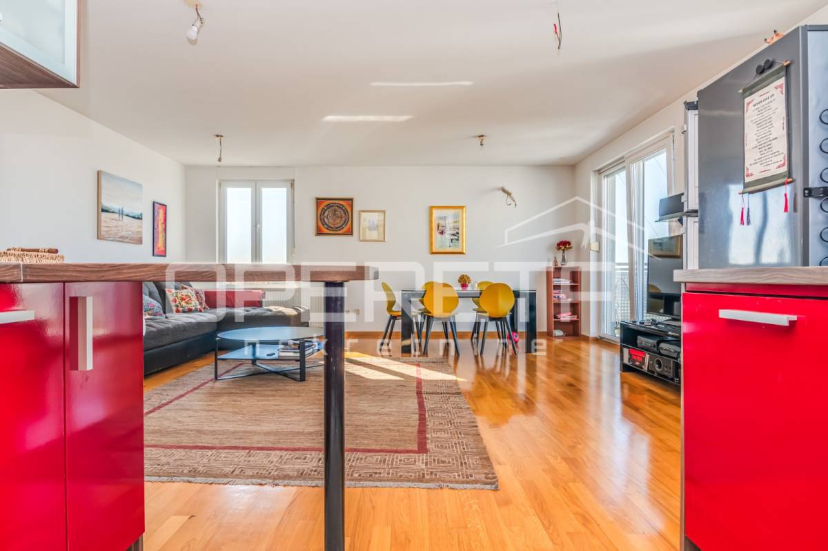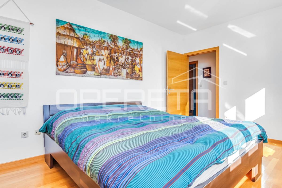 PRODAJA STANA, KNEŽIJA, Horvaćanska, 92,06 m2, prostran i svijetao trosoban stan smješten na sedmom, ujedno i zadnjem katu zgrade iz 2007. godine. Nalazi se na odličnoj poziciji u zgradi te ima prekrasan, otvoren pogled i tijekom cijeloga je dana ispunjen prirodnim svjetlom. Sastoji od prostranog ulaznog hodnika s ugradbenim ormarom, ostave, kupaonice s WC-om koja ima vlastiti prozor, dodatno zasebnog WC-a, dvije komforne spavaće sobe te velikog open space dnevnog boravka s blagovaonicom i kuhinjom te izlazom na loggiu. Trenutno stan funkcionira kao trosoban, no u originalnom projektu bio je zamišljen kao četverosoban, pa se vrlo jednostavnom intervencijom može vratiti u prvobitnu varijantu prema potrebama budućeg vlasnika. Zgrada je uredna, mirna, posložena i dobro održavana, a stan je odmah useljiv. Zbog svoje kvadrature, rasporeda, orijentacije i same mikrolokacije - stan je idealan i po mjeri jedne obitelji. Preporuka agencije!
