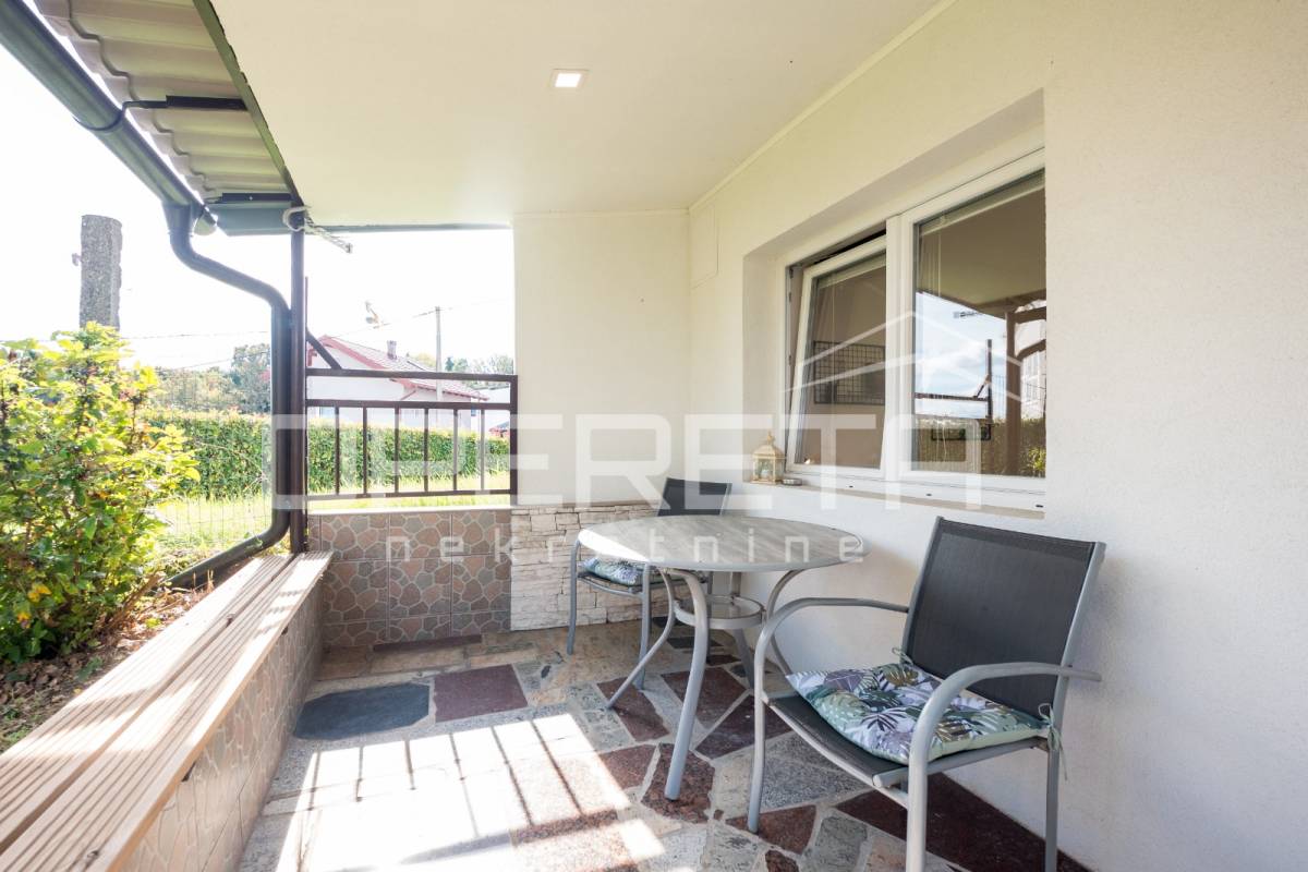 Na prodaju nudimo odličan prizemni stan s odvojenom spavaćom sobom, vlastitim vrtom i natkrivenom terasom te malim spremištem.