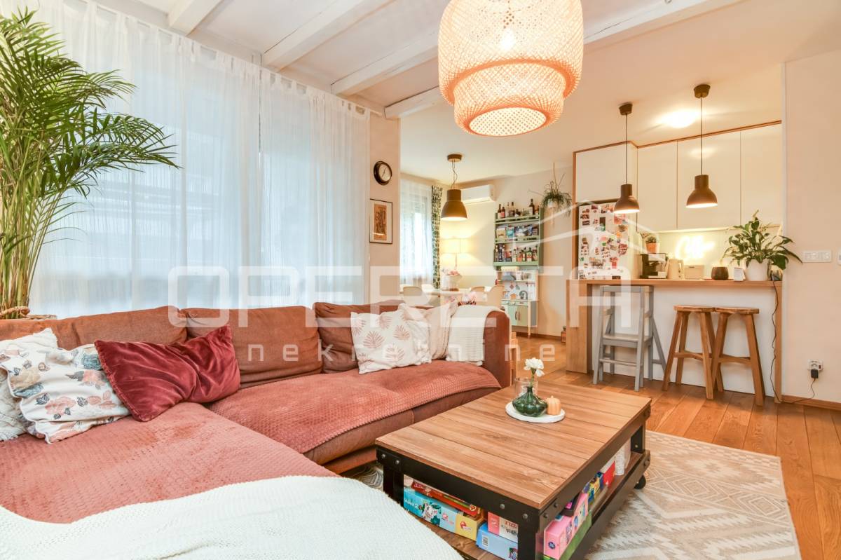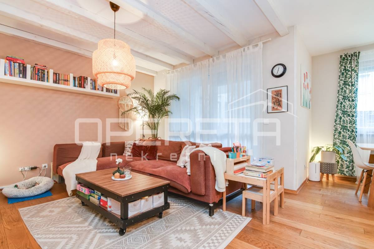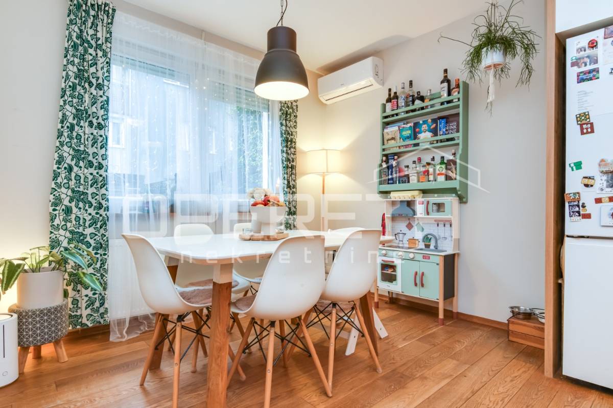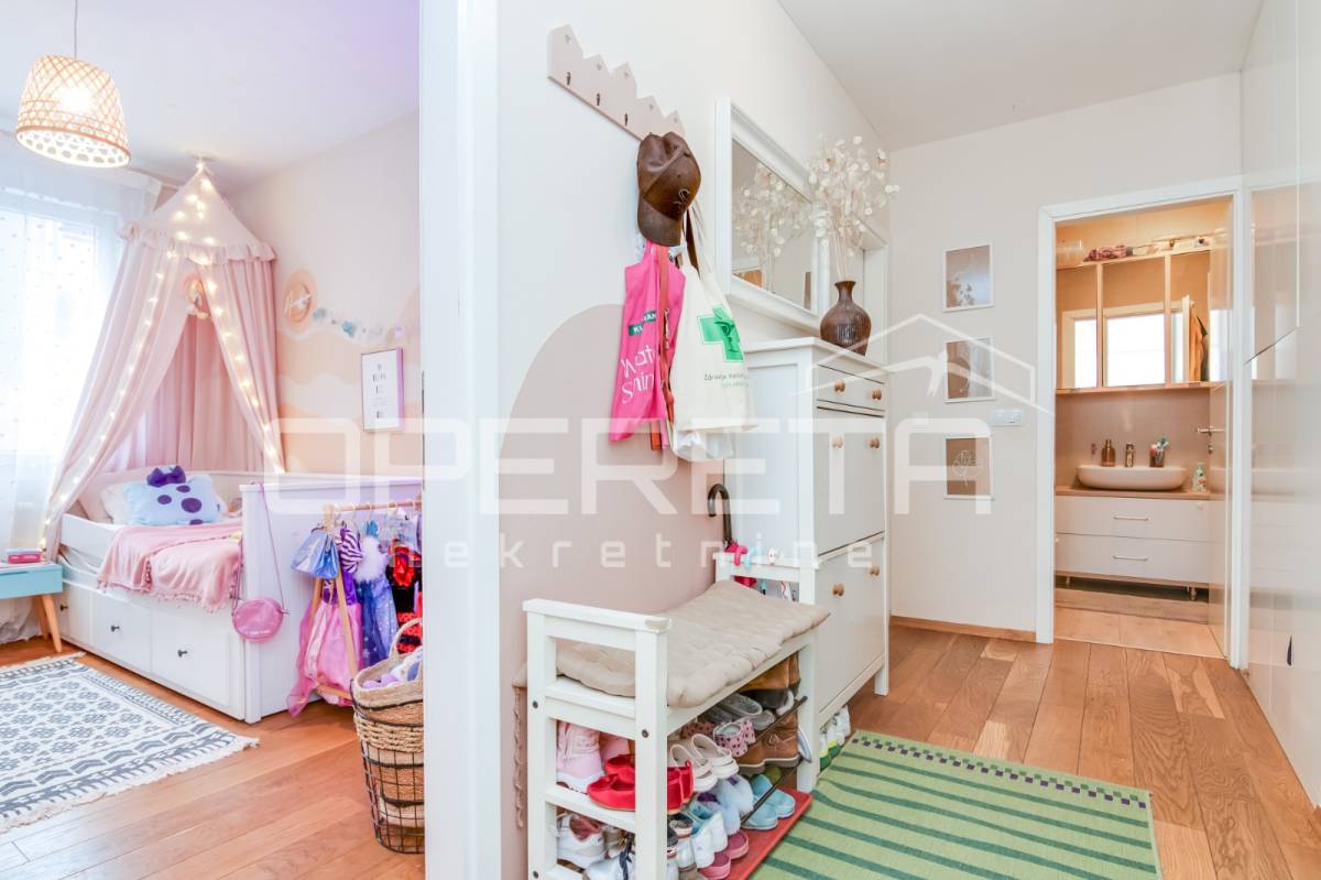 Direktan izlaz iz dnevnog boravka na terasu i vrt – idealno za obitelji s djecom, kućne ljubimce ili one koji vole boraviti na otvorenom. Pripadajuće spremište i parkirno mjesto uključeni u cijenu. Blizina javnog prijevoza (autobusna stanica), dućana i ostalih sadržaja. Mirna i sigurna lokacija, ugodna za život. Stan je odlična prilika za one koji traže više od standardnog gradskog stana – privatnost, komfor i funkcionalnost u jednom.