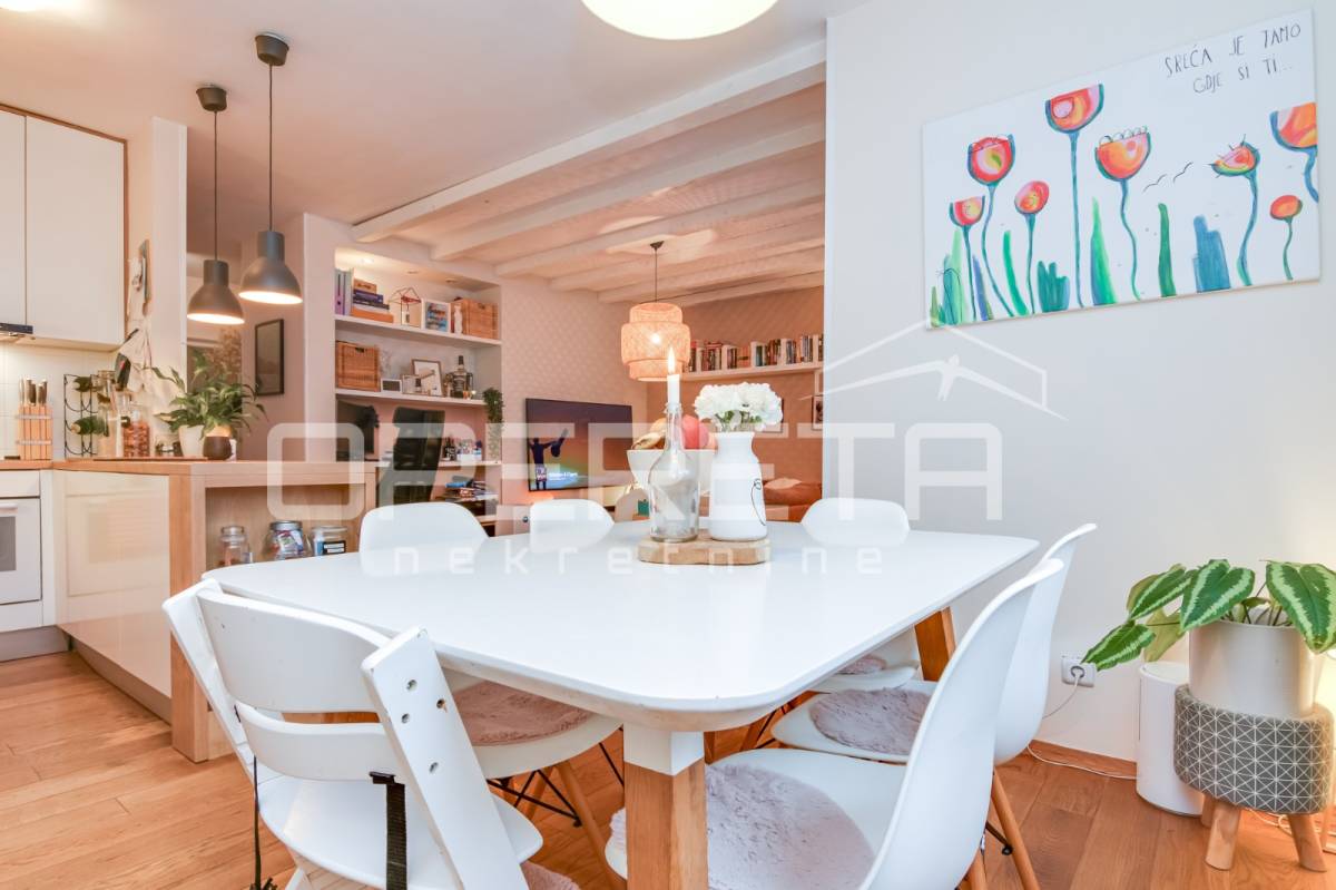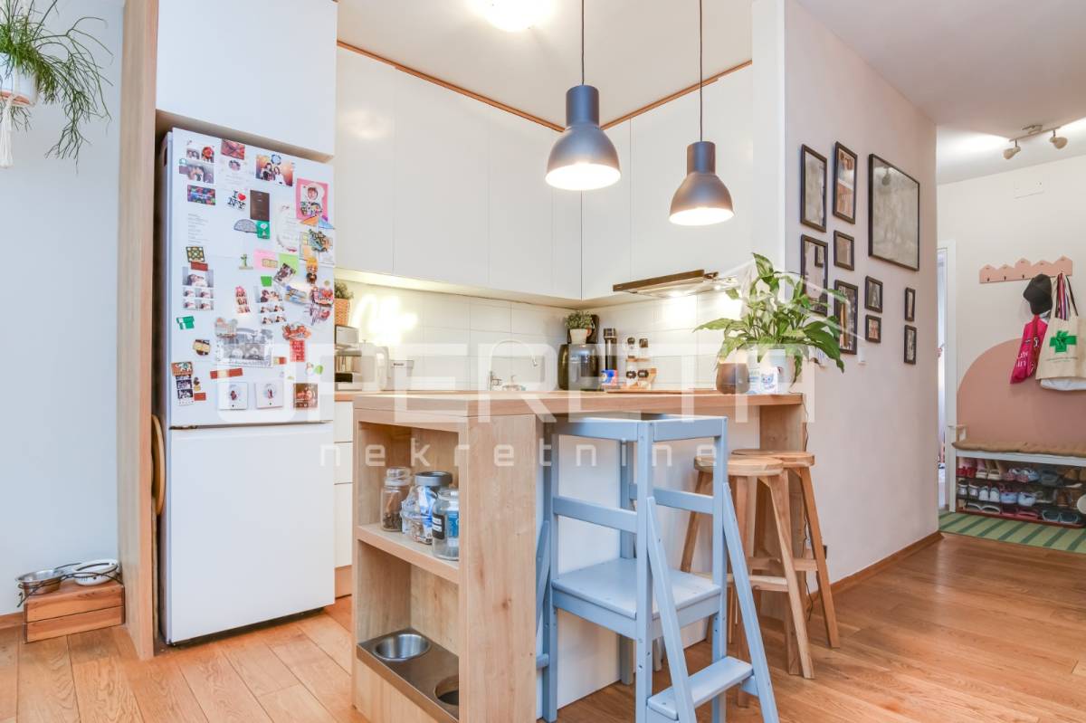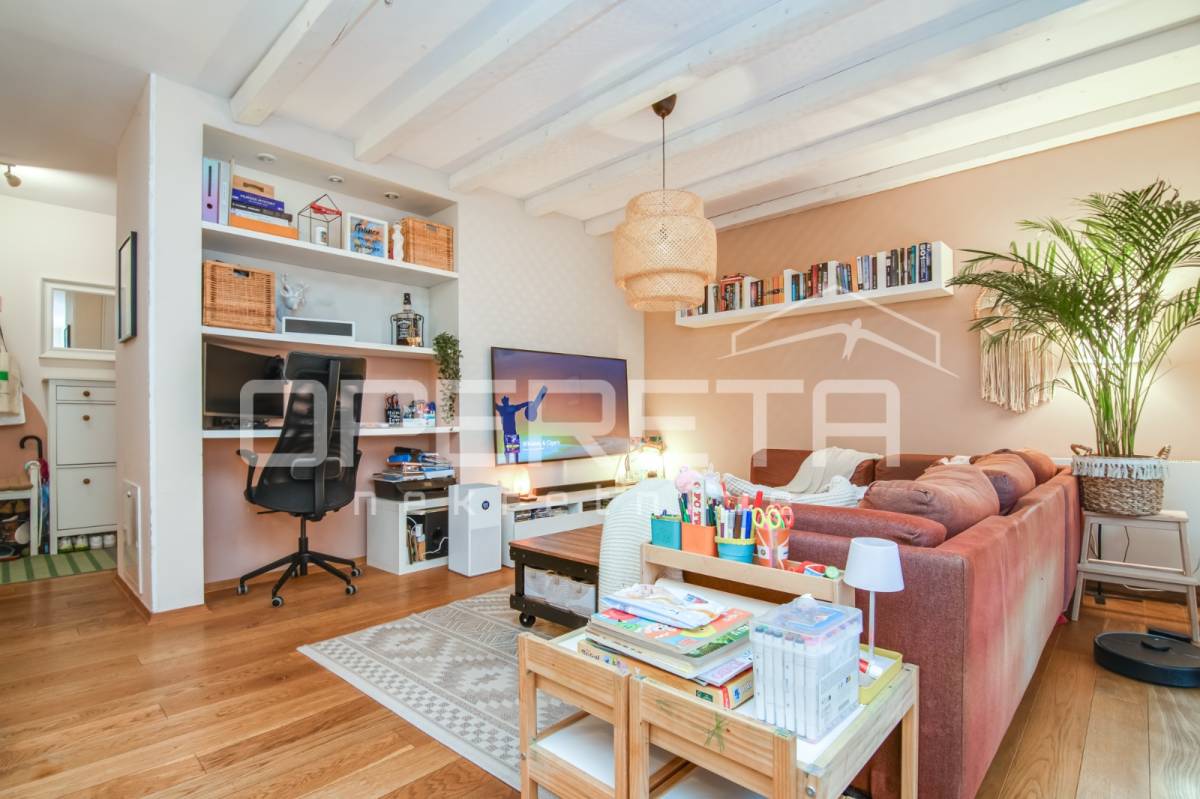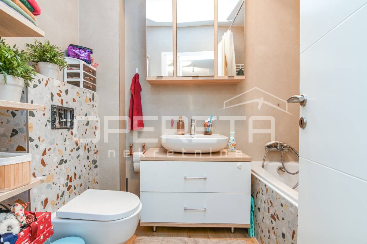 Direktan izlaz iz dnevnog boravka na terasu i vrt – idealno za obitelji s djecom, kućne ljubimce ili one koji vole boraviti na otvorenom. Pripadajuće spremište i parkirno mjesto uključeni u cijenu. Blizina javnog prijevoza (autobusna stanica), dućana i ostalih sadržaja. Mirna i sigurna lokacija, ugodna za život. Stan je odlična prilika za one koji traže više od standardnog gradskog stana – privatnost, komfor i funkcionalnost u jednom.