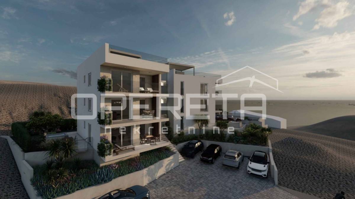 Zadnji kat u novogradnji: terasa, prohodni krov i pogled na more