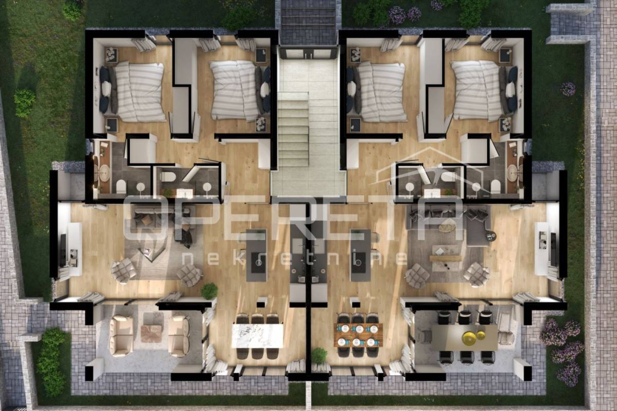 Stanari imaju na raspolaganju vlastito parkirno mjesto, a kvaliteta gradnje vidljiva je u svakom detalju – od napredne toplinske i zvučne izolacije, aluminijske stolarije s modernim kliznim sustavima, podnog grijanja do estetski oblikovanog eksterijera. Vanjski prostor oplemenjen je mediteranskim biljem, automatskim navodnjavanjem i diskretnom večernjom rasvjetom.