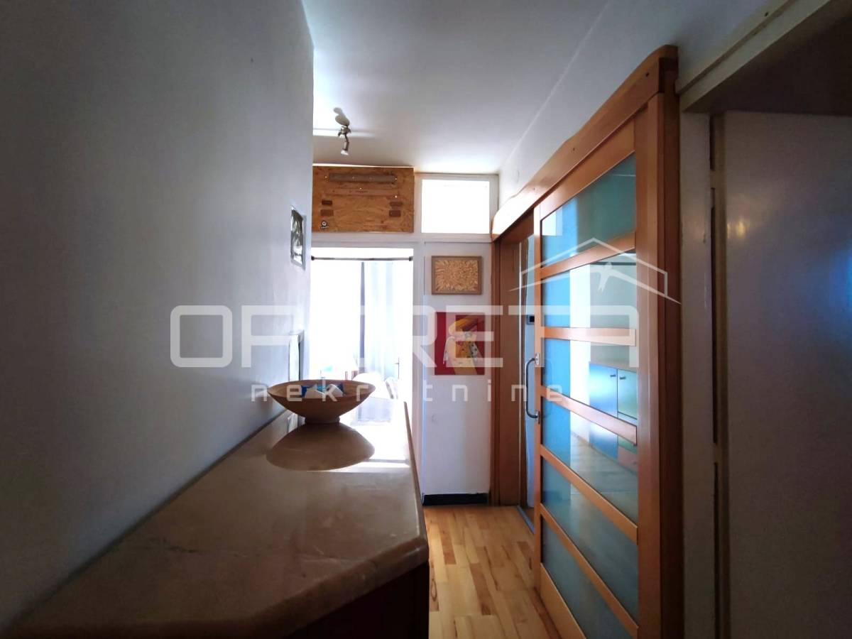Sastoji se od 3 spavaće sobe, kupaonice, hodnika velikog dnevnog boravka s blagovaonicom i kuhinjom i natkrivene terase s pogledom na zadarsku rivu i otok Ugljan.