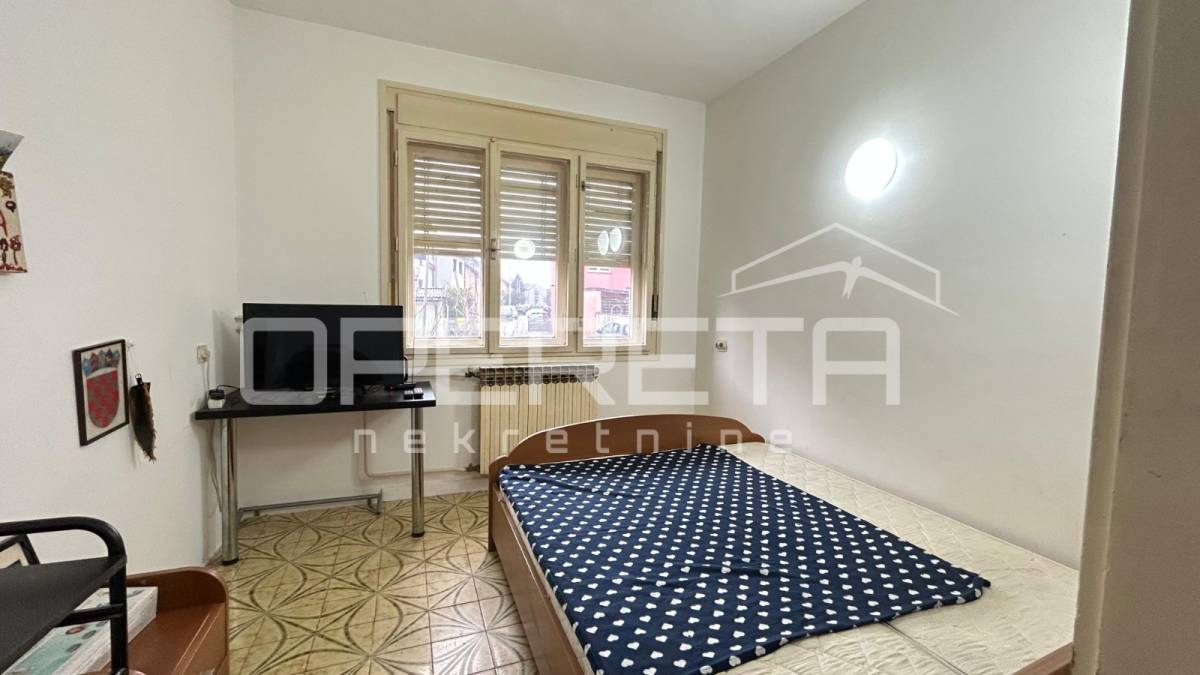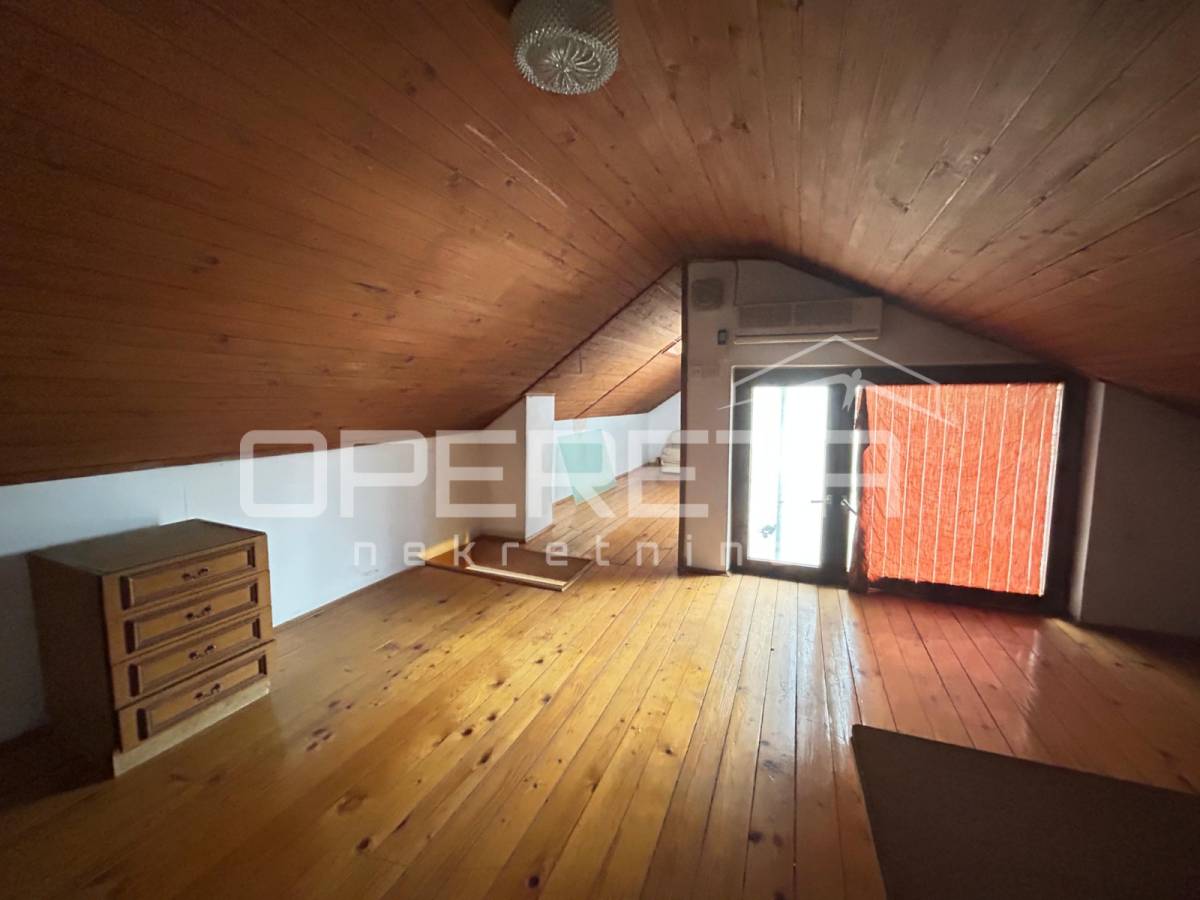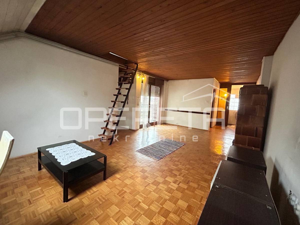 Stan na 1. katu (96m2) se sastoji od balkona, dnevnog boravka s blagovaonicom, kuhinje, 2 spavaće sobe, kupaonice s WC-om te još jedne sobe u potkrovlju. Pripada mu još i garaža te 2 prostorije u podrumu. Brojila vode, struje i plina su odvojena. Prodaju se kao cjelina, a adaptacijom oba stana se može izvesti spajanje u jednu cjelinu što bi bilo idealno za veću obitelj ili kao investicija! Blizina svih sadržaja potrebnijih za život na 5 minuta hoda na jako mirnoj lokaciji. Preporuka!