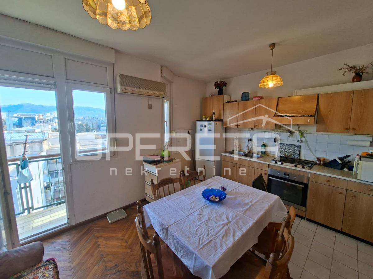 Stan se nalazi u centru grada , na vrhu stambene zgrade s liftom, u neposrednoj blizini svih sadržaja potrebnih za svakodnevni život kao što su škole, restorani i kafići. Idealna nekretnina s velikim potencijalom.