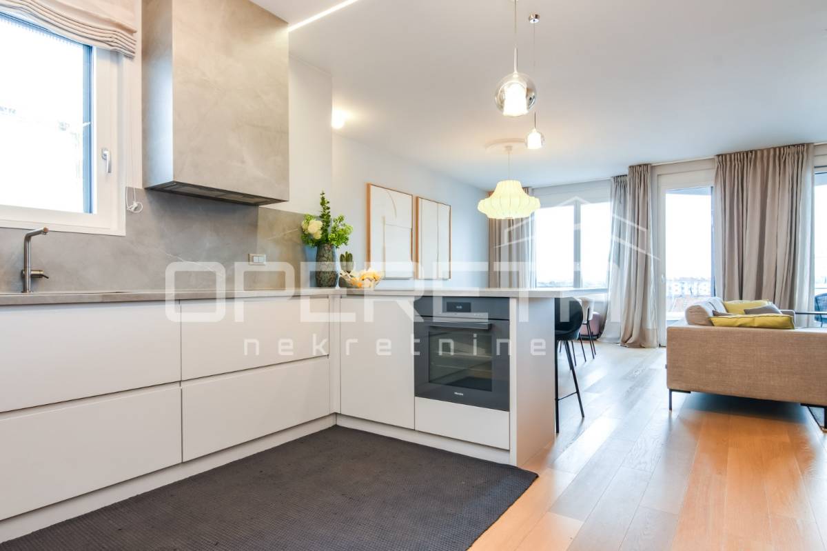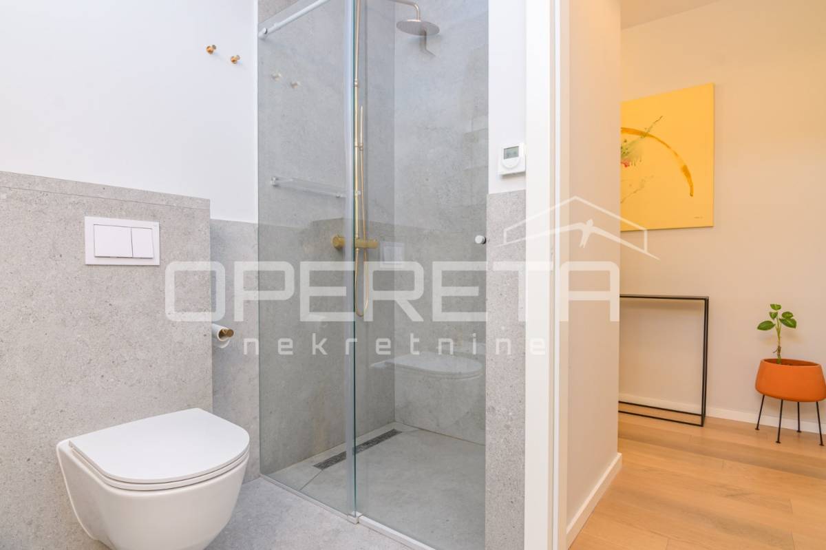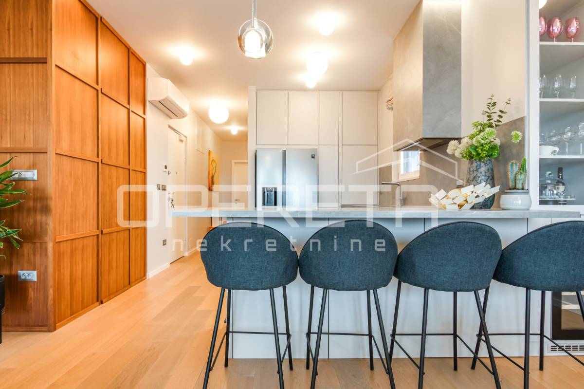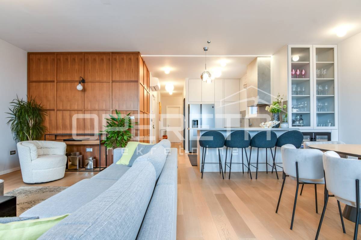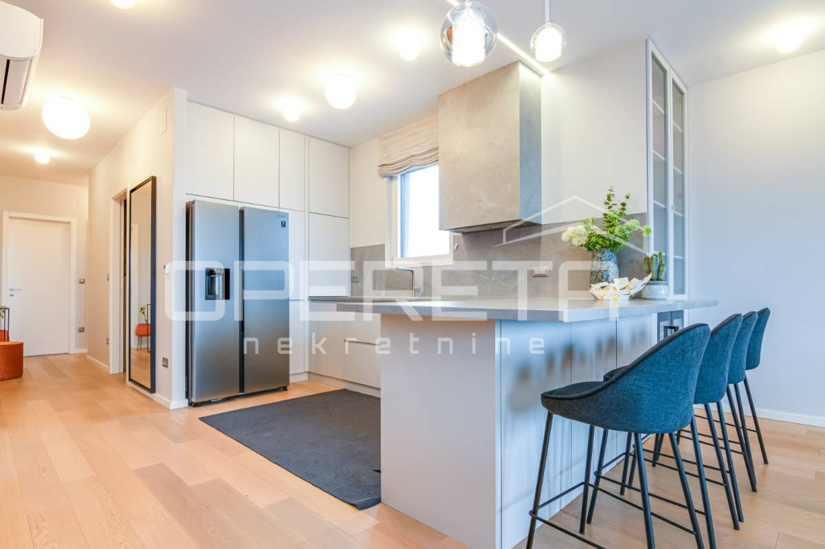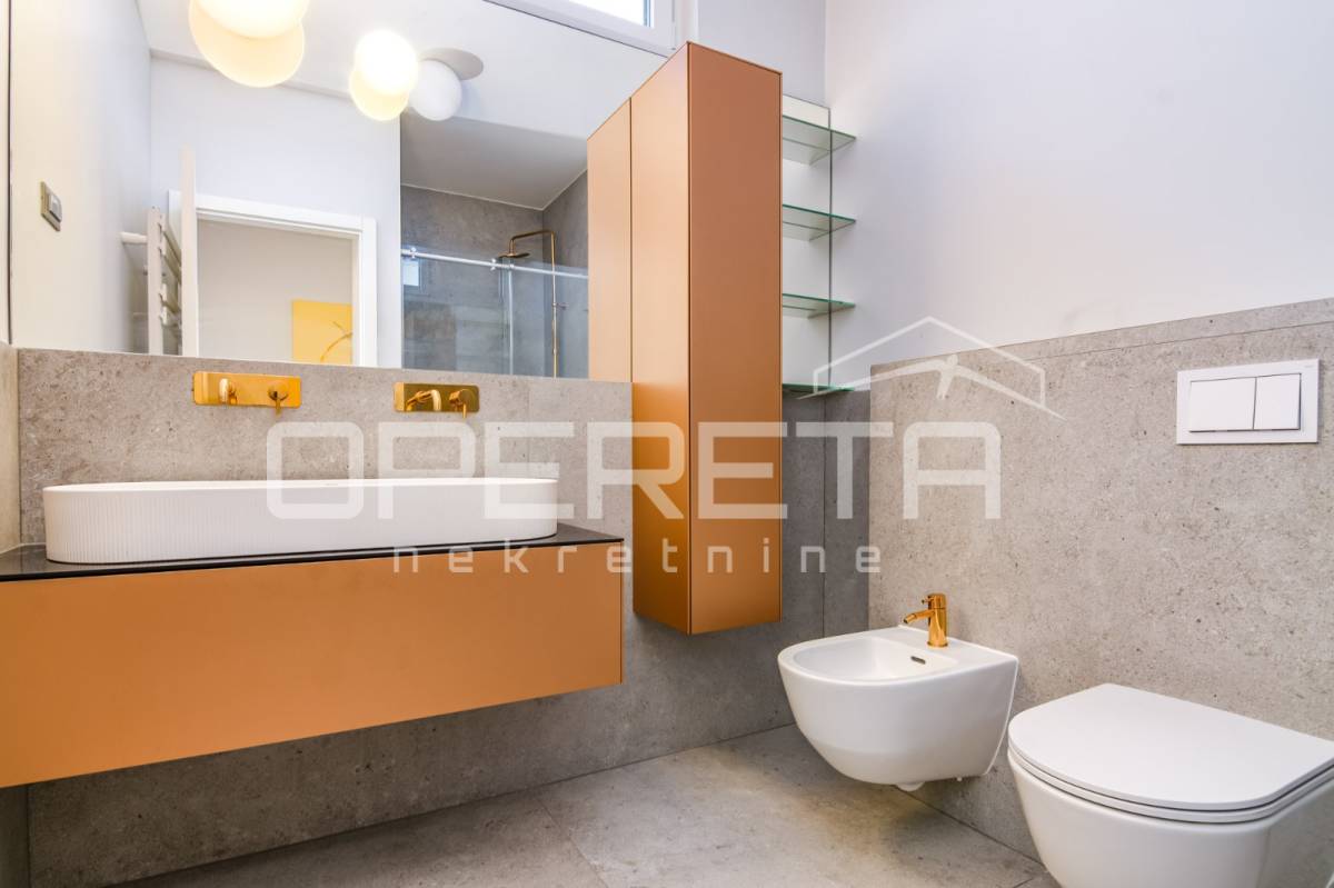 PRODAJA, STAN, ZAGREB, TREŠNJEVKA, PENTHOUSE, 116m2, stan 3s, Trakošćanska ulica. Stan ima 90m2 zatvorenog prostora i sastoji se od dnevne sobe koja sa blagovaonicom i kuhinjom čini veliki i svijetli open space prostor, 2 spavaće sobe sa mogućnošću dobijanja još jedne (originalni tlocrt), kupaonice sa WC-om i jednog odvojenog WC-a. U ukupnu kvadraturu stana su obračunati prema koeficijentu loggia, terasa te velika dupla garaža od 30m2, na -1 etaži zgrade. Stan je luksuzno i dizajnerski uređen, s pažljivo biranim materijalima i namještajem vrhunske kvalitete. Prostor je funkcionalno organiziran, prozračan i bogat prirodnim svjetlom, što stvara iznimno ugodan ambijent za život. Moderno uređena kuhinja, podnop grijanje u cijelom stanu, pvc, klime, kamere... Garaža je posebno uknjižena i nije uvijet za kupnju stana. Ekskluzivan penthouse u centru Trešnjevke,predstavlja rijetku priliku na tržištu te je idealan za Kupca koji traži prestiž, komfor i vrhunsku lokaciju u neposrednoj blizini svih sadržaja – tramvajskih linija, trgovina, restorana, škola i ostalih gradskih pogodnosti.