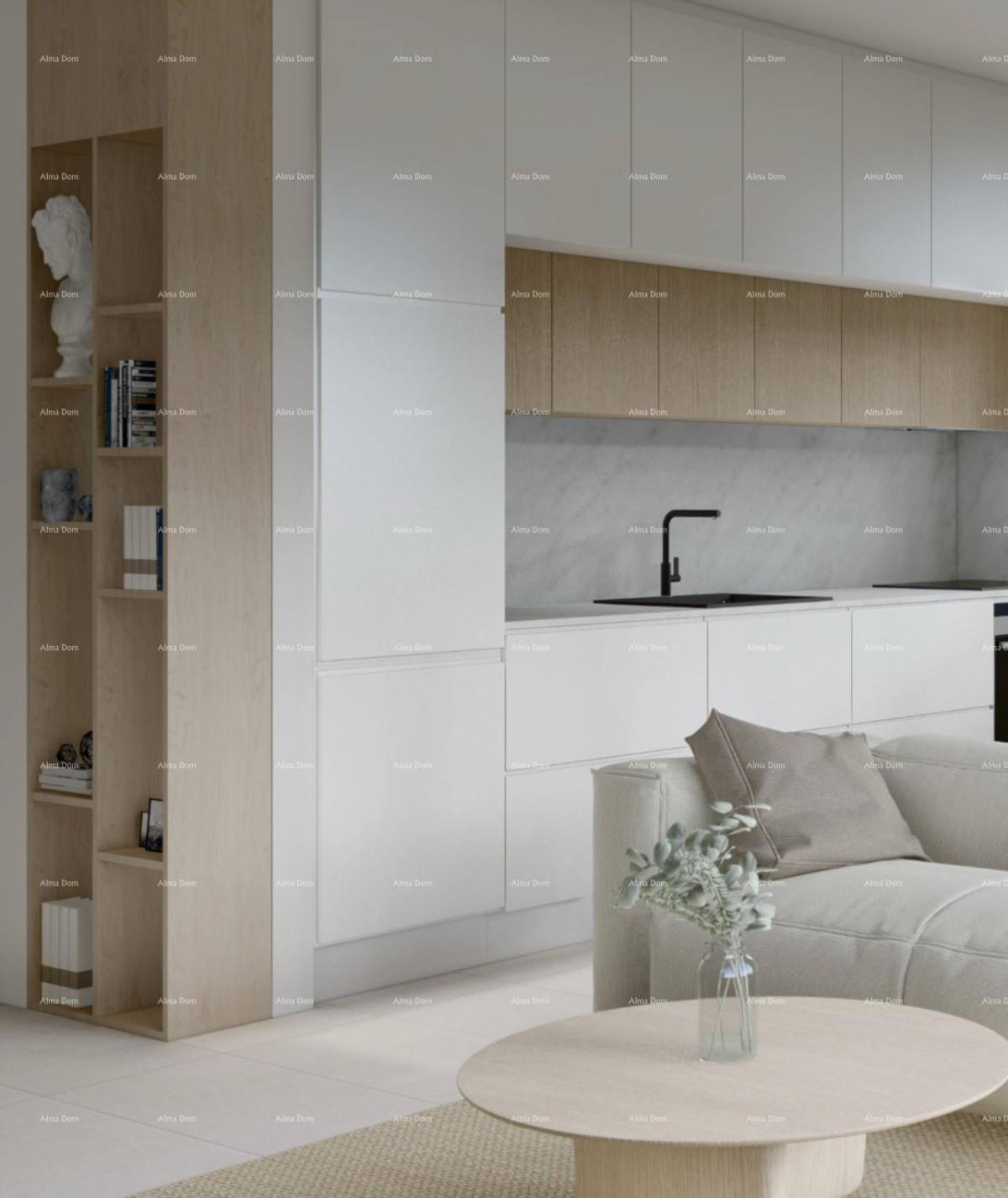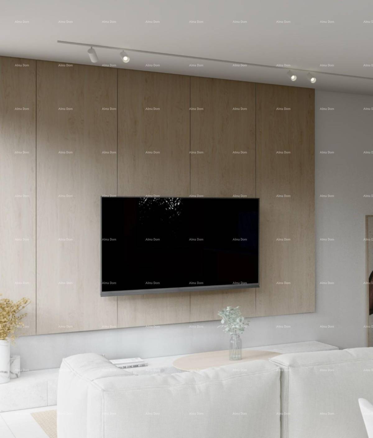 Stan će biti opremljen visokokvalitetnim sustavima i materijalima. Predviđeno je MultiSplit grijanje i hlađenje, podno grijanje u kuhinji i kupaonici, talijanske keramičke pločice u većini prostora te drveni pod u spavaćoj sobi. Veliki aluminijski stakleni portali u antracit boji, s troslojnim staklom i podizno-kliznim otvaranjem, osiguravaju obilje prirodnog svjetla i dodatnu estetsku vrijednost. Spušteni strop s integriranom karnisom dodatno naglašava suvremen i elegantan dizajn interijera.