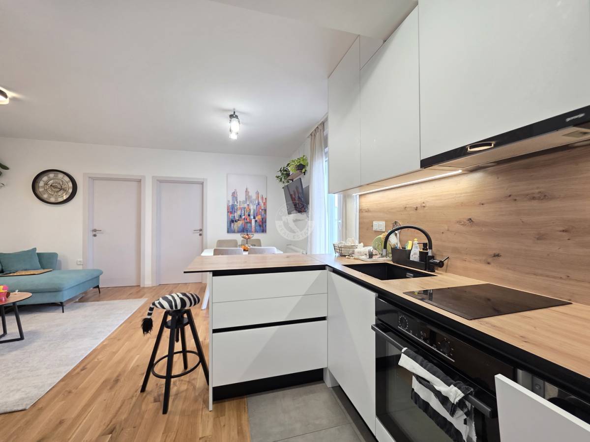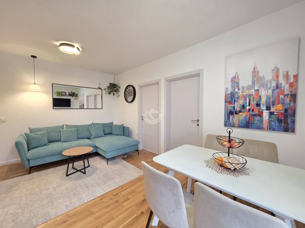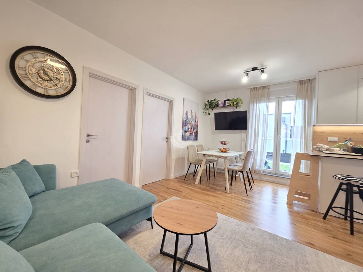 Stan se nalazi na mirnoj i ugodnoj mikrolokaciji i blizini CITY EASTa, idealnoj za obiteljski život. U neposrednoj blizini su škola, vrtići, sportski tereni i trgovine, a prometna povezanost je odlična – blizina stanice vlaka i autobusne linije 215 prema Kvatriću.