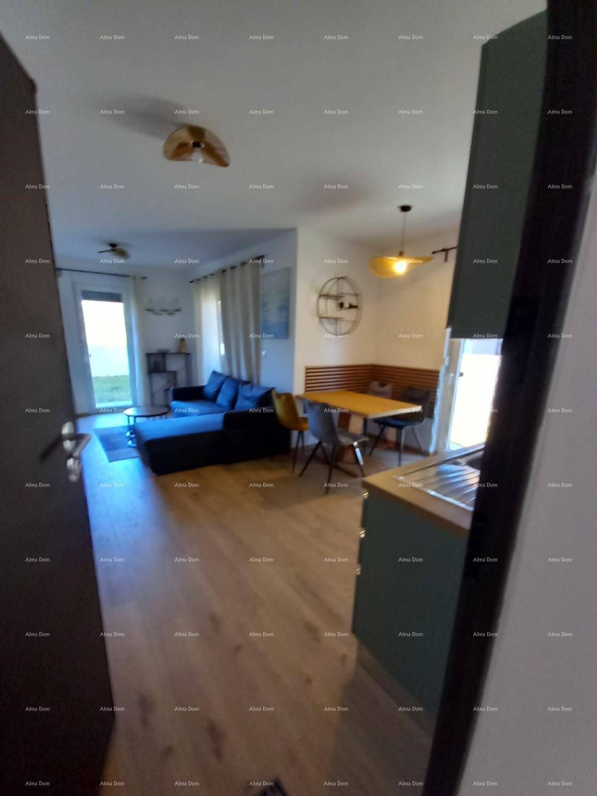 Stan je pažljivo osmišljen kako bi maksimalno iskoristio prostor i prirodnu svjetlost. Dnevni boravak je povezan s kuhinjom i trpezarijom u funkcionalnu cjelinu, dok spavaća soba pruža udobnost i mir. Posebna prednost ove nekretnine je direktan izlaz u prelijepo uređeni privatni vrt, kojem se pristupa kako iz dnevnog boravka, tako i iz spavaće sobe, što dodatno doprinosi osjećaju prostora i povezanosti s prirodom.