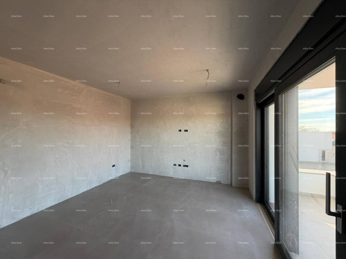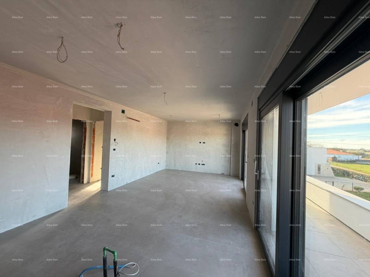 Na prodaju je moderan dvosoban stan s terasom , smješten u mirnom naselju, u blizini centra Umaga i mora.