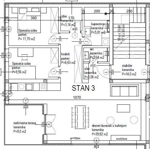 Stan A3, nalazi se na prvom katu zgrade i sastoji se od sljedećih prostorija: