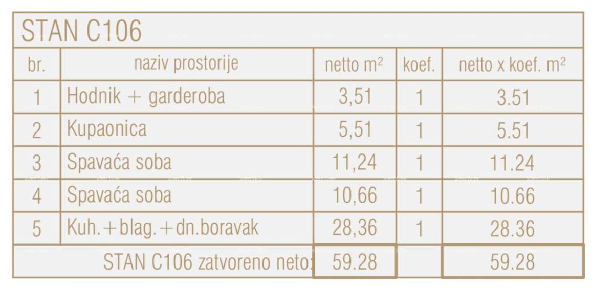 Stan C106, nalazi se na 1.katu centralne jedinice zgrade i sastoji se od: