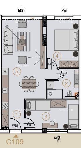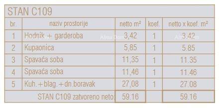 Stan C109, nalazi se na 1.katu centralne jedinice zgrade i sastoji se od: