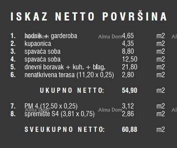 Ovom stanu pripada spremište i 1 parkirno - uključeno u cijenu.