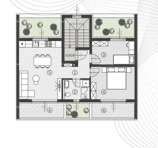 Stan oznake 8D nalazi se na 2.katu zgrade i sastoji se od: hodnika, dnevnog boravka s kuhinjom i blagovaonom, 2 spavaće sobe, kupaone i terase.