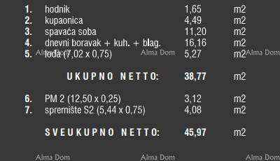 Ovom stanu pripada 1 parkirno mjesto i spremište koje je uključeno u cijenu.