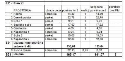 Stan S21, nalazi se u potkrovlju zgrade, površine 165.17m2 (neto 141,07 m2).