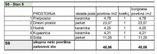 Stan S6, nalazi se u prizemlju zgrade, površine 48,06 m2.