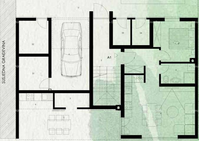 Stan A1 se nalazi u prizemlju zgrade B sa ukupno četiri stambene jedinice.