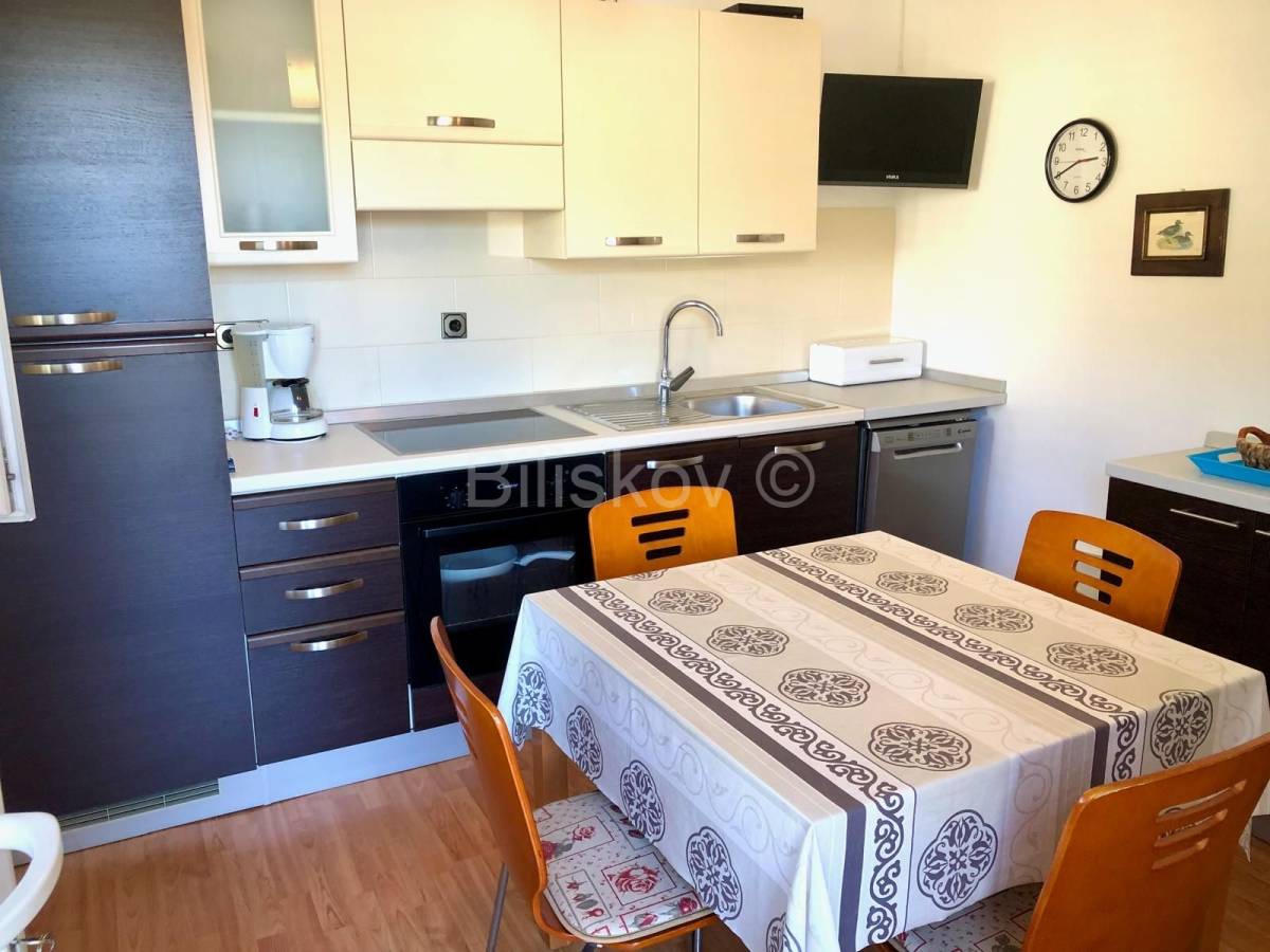 Prvi apartman na katu 90m2: ulaznog hodnika, dnevnog boravka, kuhinje i blagovaoince, 2 spavaće sobe, kupaonice i velike terase