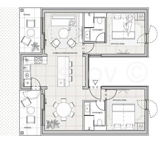 Sveti Filip i Jakov, dvosobni apartman ukupne neto površine 85,95 m2, u turističkom kompleksu Molum Hotel&Residences