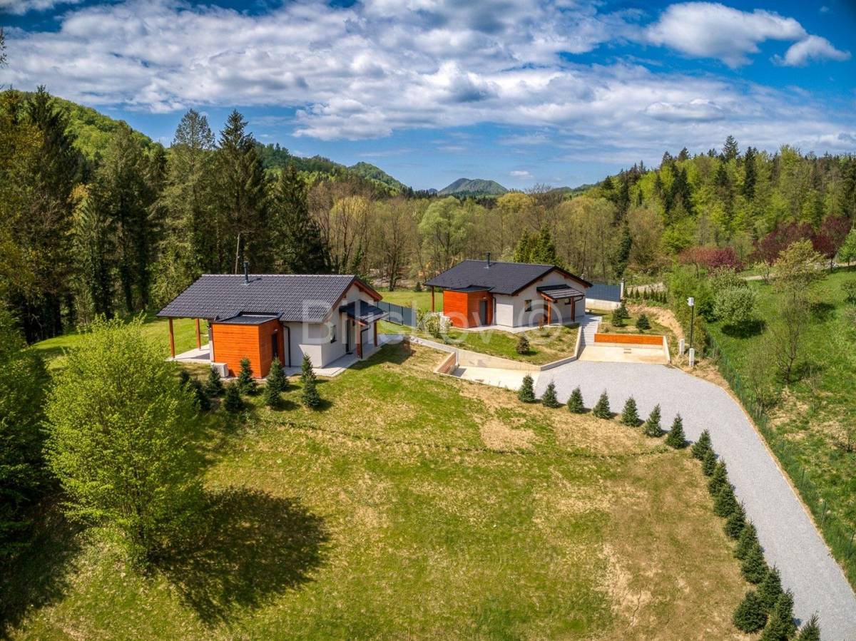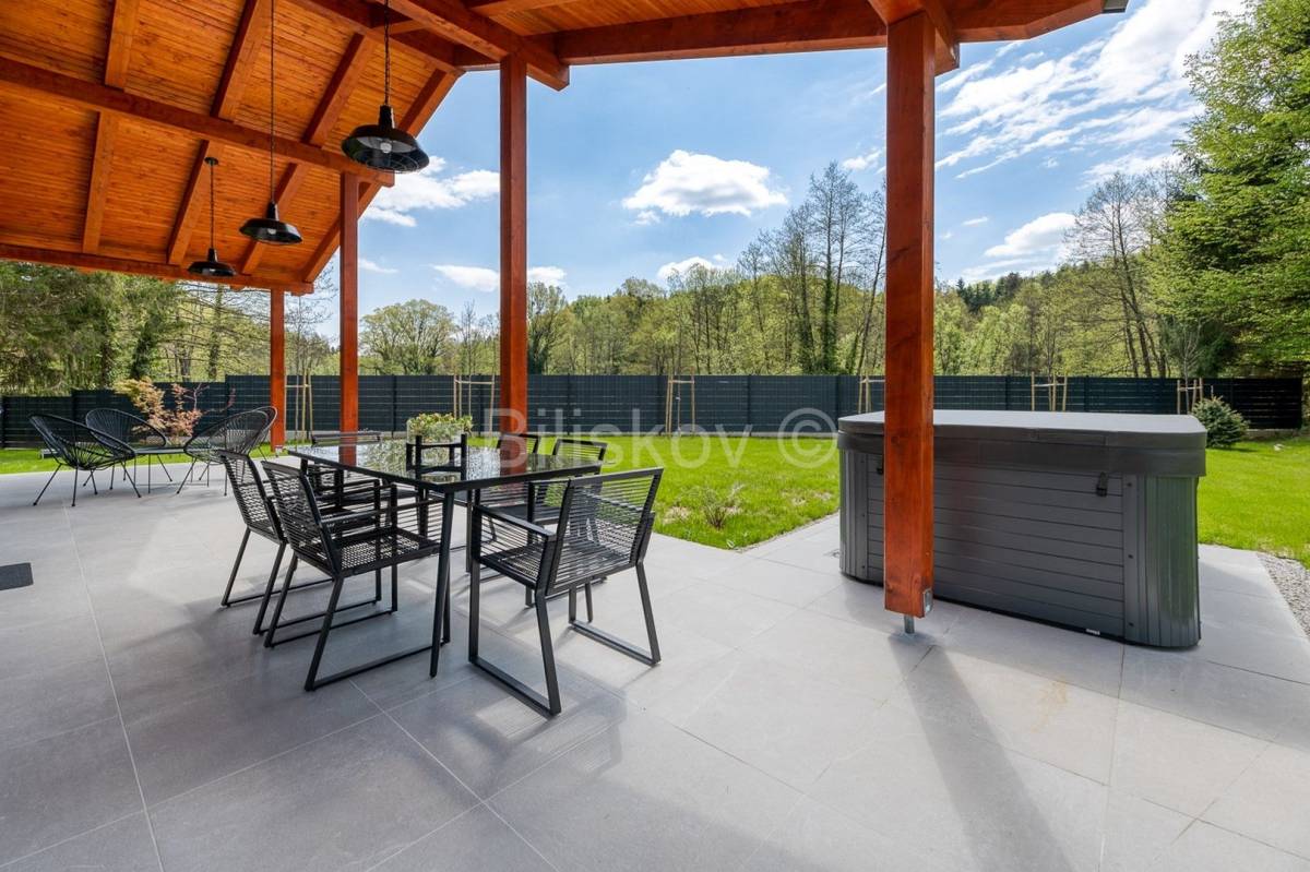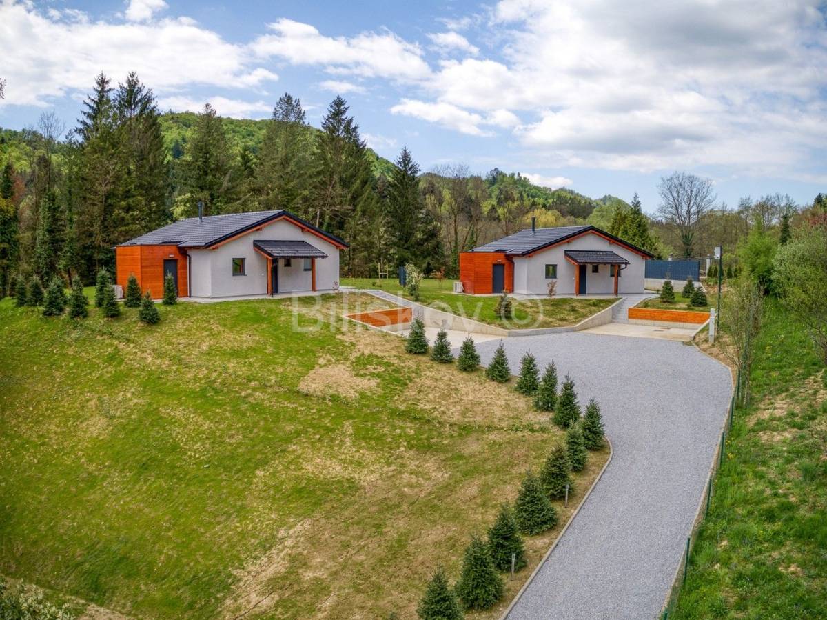 U neposrednoj blizini dvorca Trakošćan prodaje se novoizgrađeno imanje s tri samostojeće luksuzne vikend kuće, ukupne površine 401,85 m2 (svaka kuća površinu 133,95m2) sagrađene na parceli ukupne površine 5.707 m2.Koncept projekta je realiziran tako da svaka kuća ima svoju parcelu od 1. 500m2, parking, vrt i okućnicu.Unutar imanja svaka kuća je i suvlasnik pristupnog puta.Kuće ukupne neto površine stambenog prostora 66,25m2 se sastoje od dnevnog boravka, kuhinje, blagovaonice, 2 spavaće sobe, kupaonice s WC-om te gostinjskog WC-a.Svakoj kući također pripada i terasa površine 70 m2, wellness (sauna), jacuzzi i 3 parkirna mjesta.