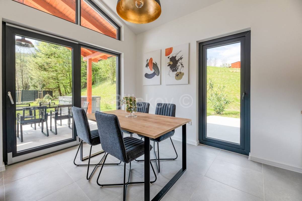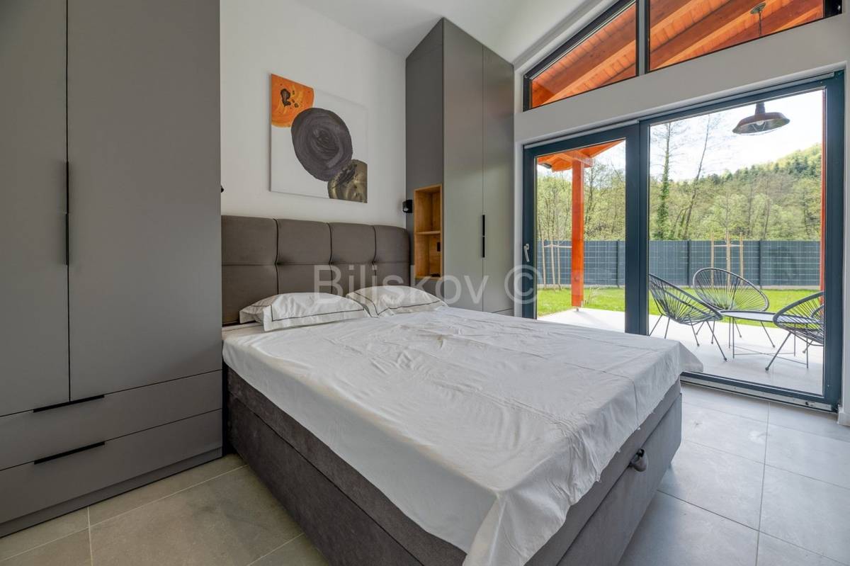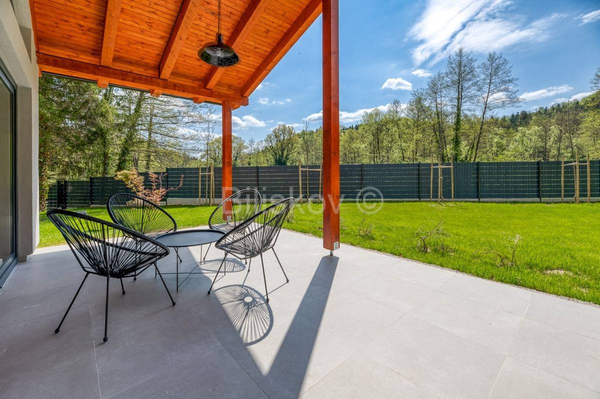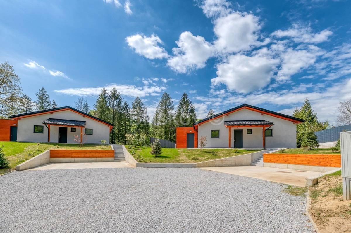 U neposrednoj blizini dvorca Trakošćan prodaje se novoizgrađeno imanje s tri samostojeće luksuzne vikend kuće, ukupne površine 401,85 m2 (svaka kuća površinu 133,95m2) sagrađene na parceli ukupne površine 5.707 m2.Koncept projekta je realiziran tako da svaka kuća ima svoju parcelu od 1. 500m2, parking, vrt i okućnicu.Unutar imanja svaka kuća je i suvlasnik pristupnog puta.Kuće ukupne neto površine stambenog prostora 66,25m2 se sastoje od dnevnog boravka, kuhinje, blagovaonice, 2 spavaće sobe, kupaonice s WC-om te gostinjskog WC-a.Svakoj kući također pripada i terasa površine 70 m2, wellness (sauna), jacuzzi i 3 parkirna mjesta.