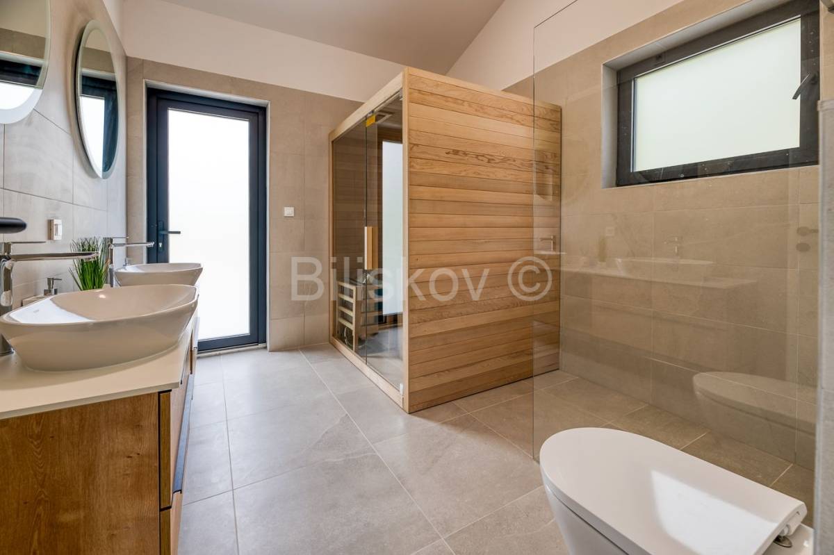Kući pripada terasa površine 70m2, wellness (sauna), jacuzzi i 3 parkirna mjesta.