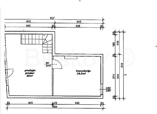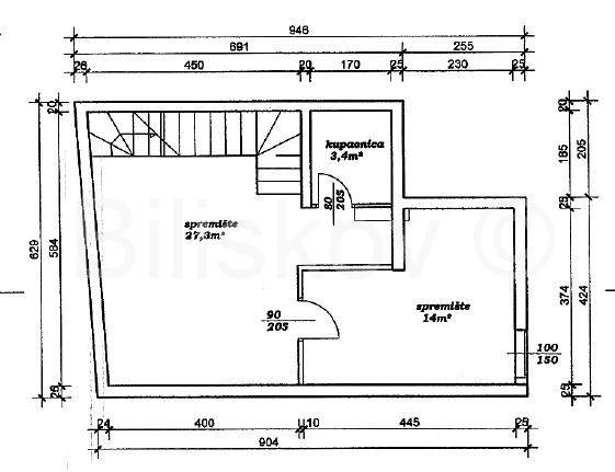 Prostor u podrumu se sastoji od dvije velike prostorije, čajne kuhinjice i kupaonice sa tuš kabinom i Wc-om, ukupne površine 49 m2. Visina stropa je 285 cm. Prizemlje se sastoji od dvije velike prostorije ukupne površine 45,20 m2 i visine stropa 340 cm.
