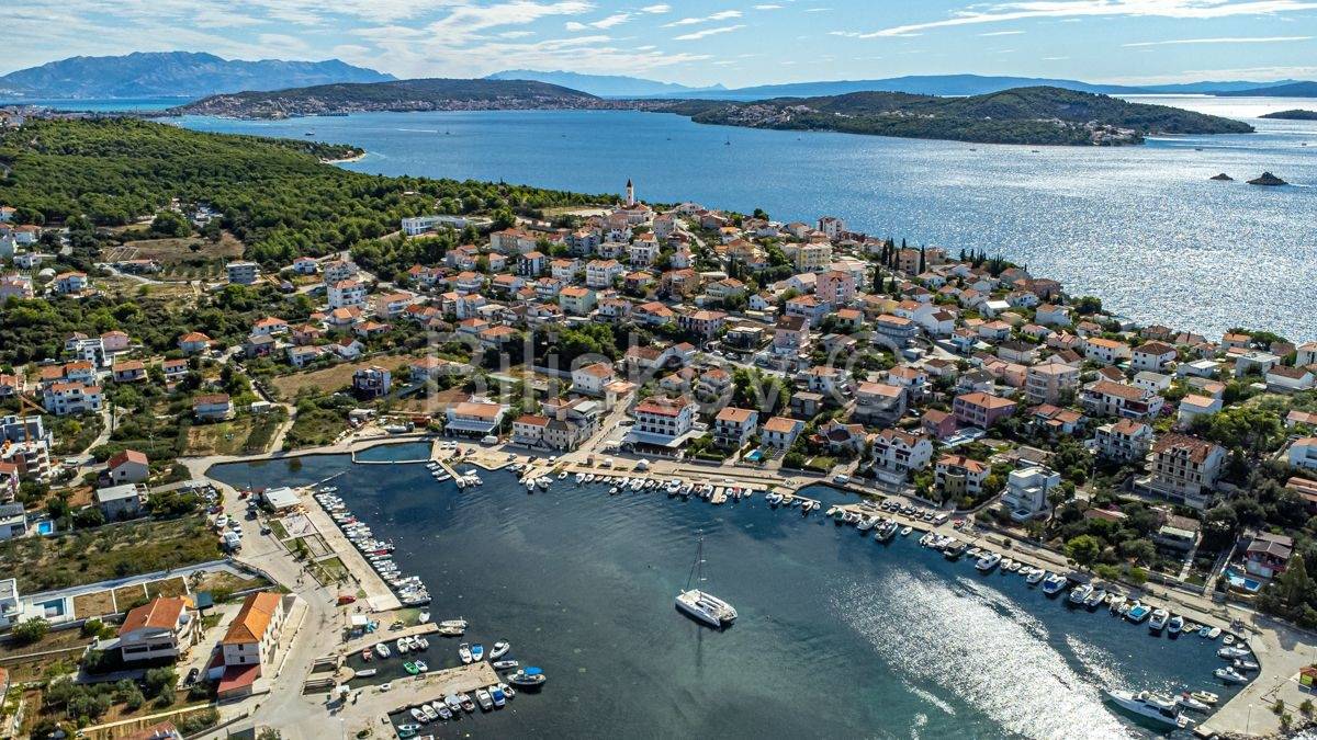 Parcela se nalazi na povišenom terenu odakle se pruža pogled na more i Seget Vranjicu.