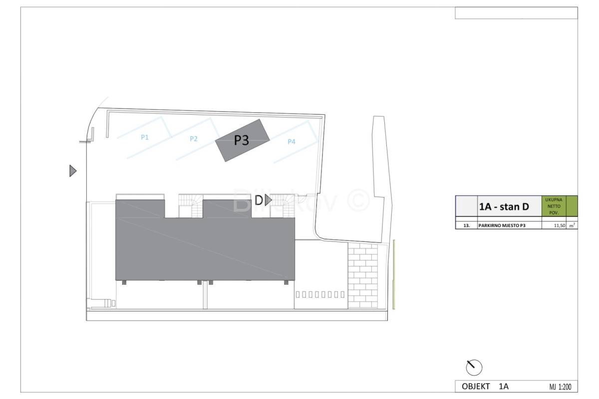 Također, stanu pripada terasa od 20,47 m2, vanjsko stubište od 10,33 m2 te parkirno mjesto površine 11,50 m2.