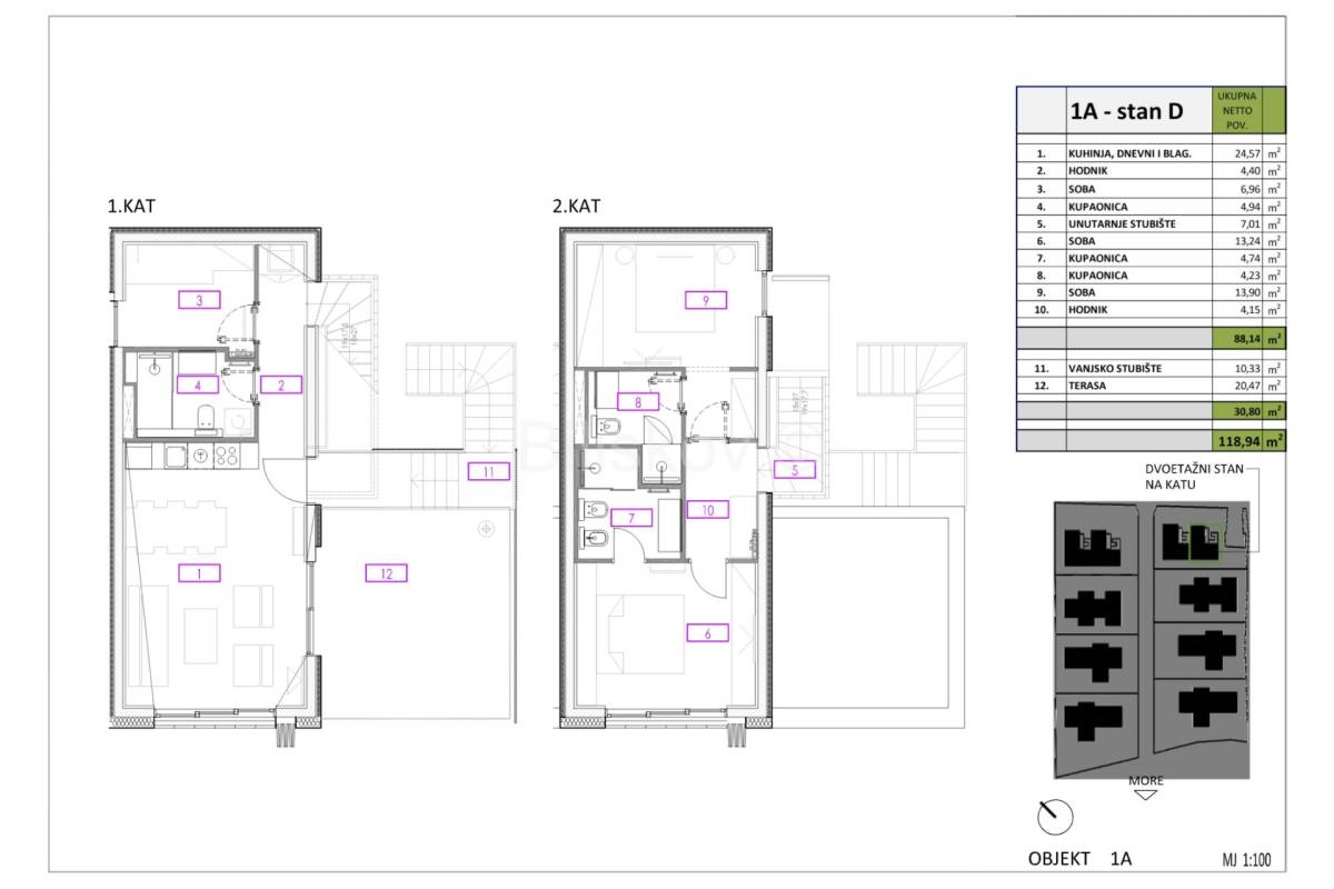 Prekrasan četverosoban dvoetažni stan u novogradnji neto površine 130,44 m2.