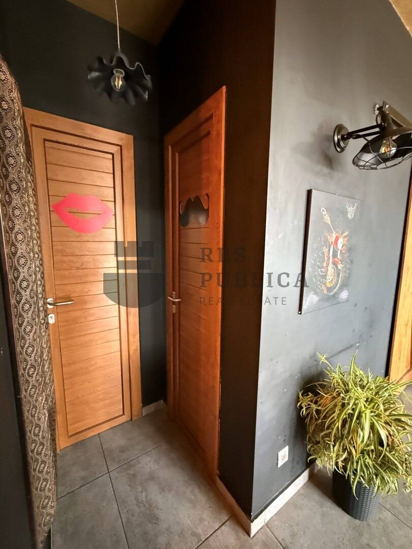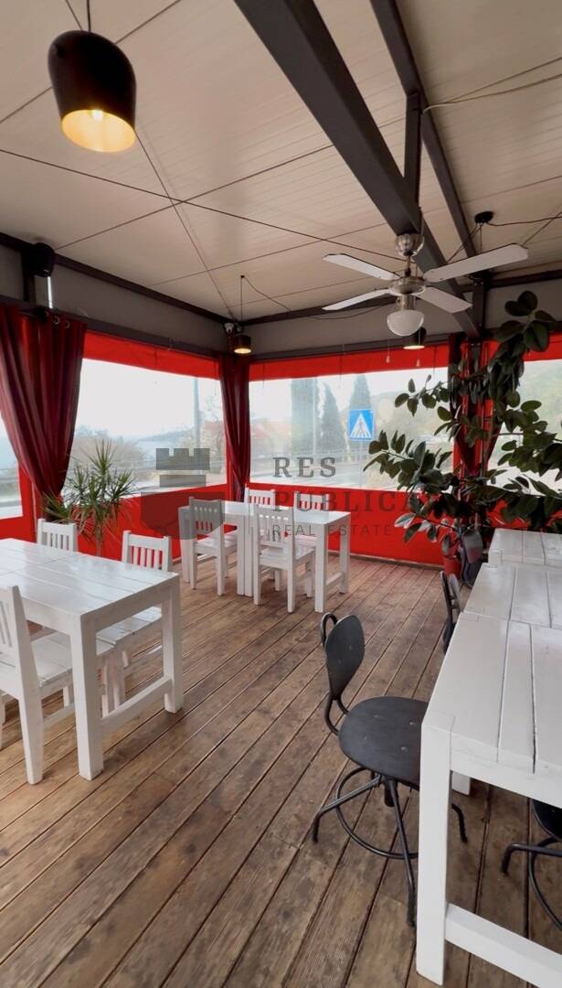 Unutarnji prostor površine 84 m² funkcionalno je organiziran, uključujući profesionalnu kuhinju, šank, sanitarne čvorove i ugostiteljsku salu s 30 sjedećih mjesta. Dodatnu vrijednost daju natkrivena terasa povezana s unutarnjim prostorom i vanjska terasa smještena u uređenom vrtu, čime se ukupan kapacitet povećava na približno 100 gostiju.