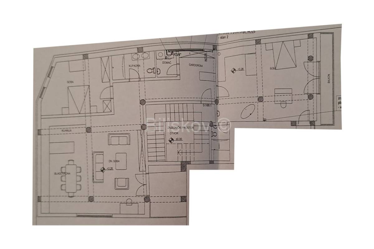 Fantastičan stan ukupne neto površine 163,91 m2 smjestio se na prvom katu novoadaptirane kuće u kojoj se nalaze tri stana i prizemni poslovni prostor.