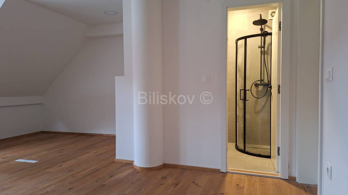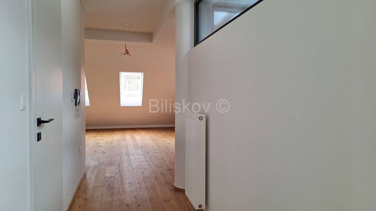 Fantastičan stan ukupne neto površine 134,59 m2 smjestio se na drugom i zadnjem katu novoadaptirane kuće u kojoj se nalaze tri stana i prizemni poslovni prostor.