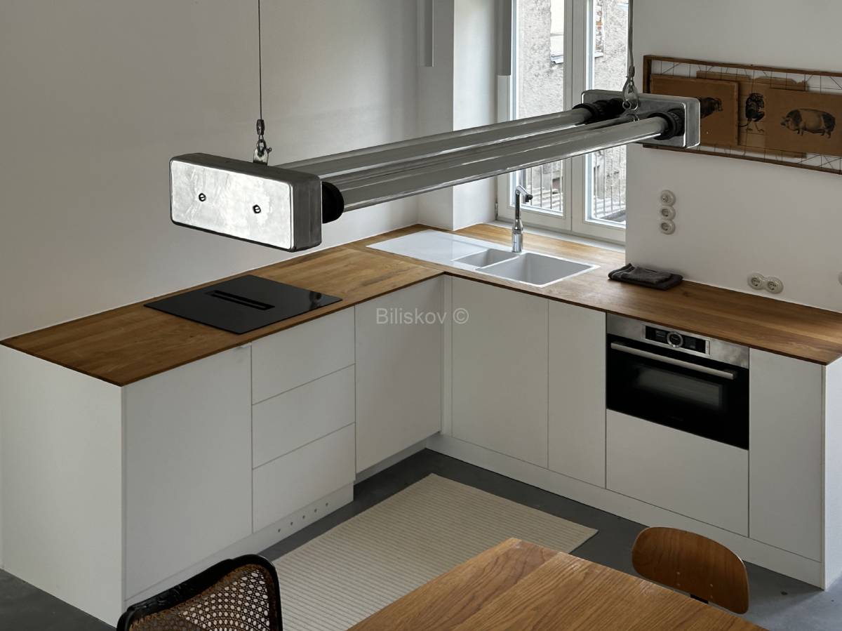 Kuhinja je izrađena po mjeri i opremljena visokokvalitetnim uređajima, dok su sve prostorije obogaćene pažljivo odabranim stilskim detaljima. Pojedini komadi namještaja mogu biti uključeni u cijenu.