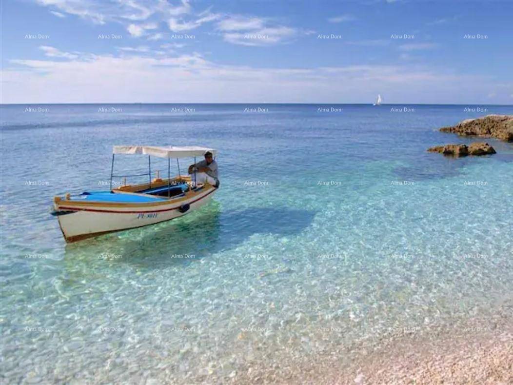 Na prvom katu se nalaze dva zasebna apartmana, svaki sa jednom spavaćom sobom, hodnikom, dnevnim boravkom sa kuhinjom i velikim terasama sa kojih se pruža prekrasni pogled na more.