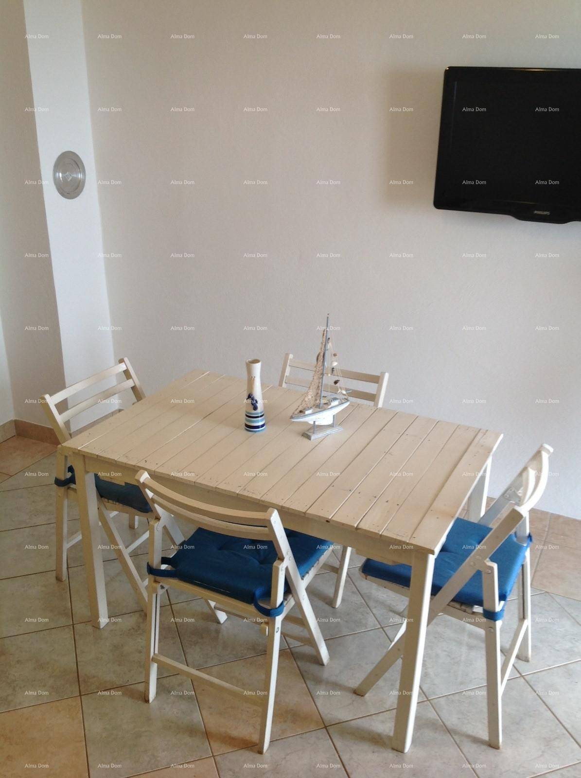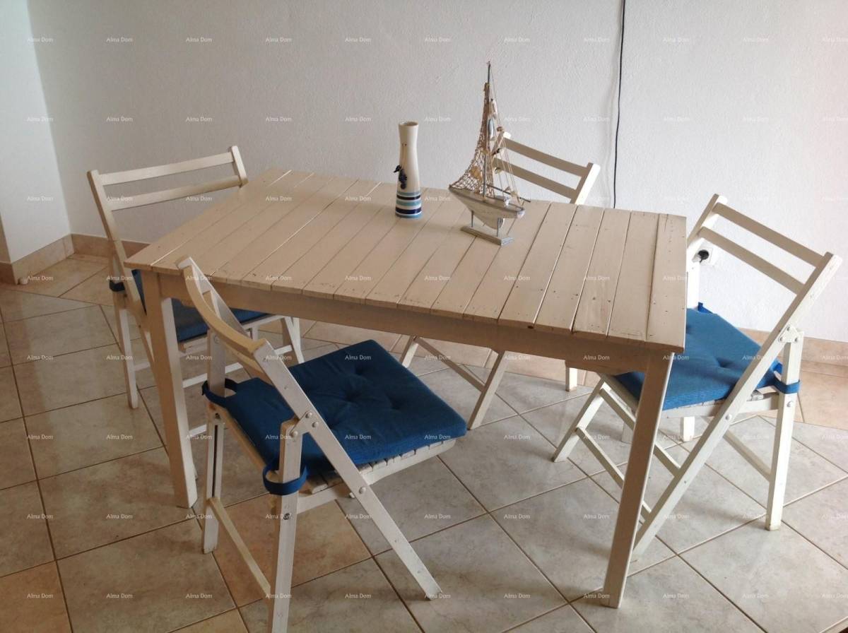 U prizemlju se nalazi apartman sa dvije spavaće sobe, dnevnim boravkom, kuhinjom, kupaonom i velikom terasom.